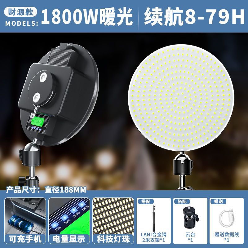 • 원형 [1800 따뜻한 빛] 충전식 휴대폰/전광판/재원 [캠핑*스톨*긴급] 스탠드형
