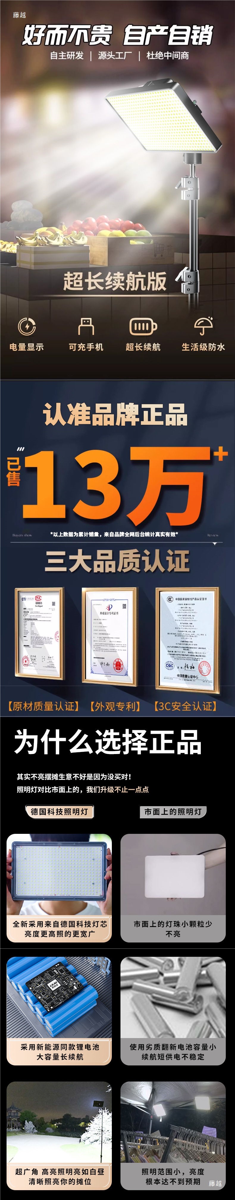 • 사각형 [1400 백색광] 충전식 휴대폰/전광판/재정 자원 [캠핑*스톨*긴급] 단일 램프 모델