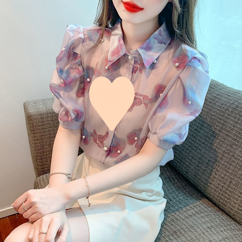 헤비 크래프트 비즈 쉬폰 셔츠 2025 여름 신상 슬리밍 컬러 탑 여성 스위트 셔츠스토어 가기