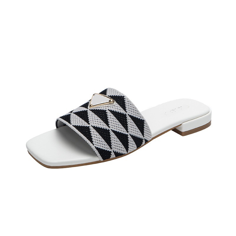 2025 유럽과 미국의 자수 삼각형 로고 P 슬리퍼 여성 플랫 샌들 여성 슬리퍼 아프리카