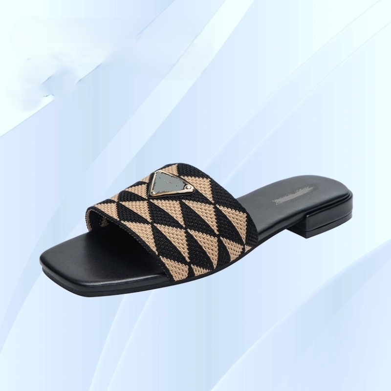 2025 유럽과 미국의 자수 삼각형 로고 P 슬리퍼 여성 플랫 샌들 여성 슬리퍼 아프리카스토어 가기