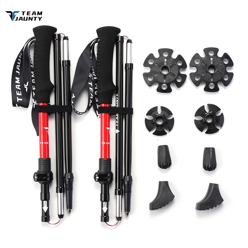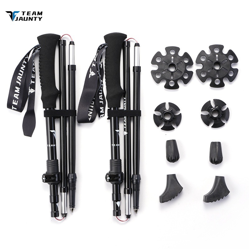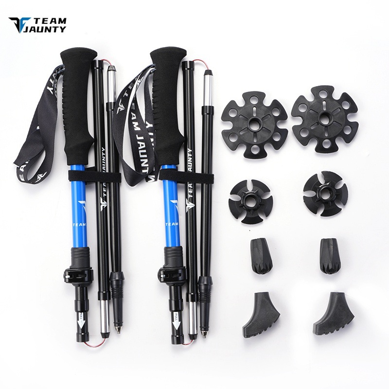 跨境新款7075铝合金高强轻便手杖五节折叠登山杖套装