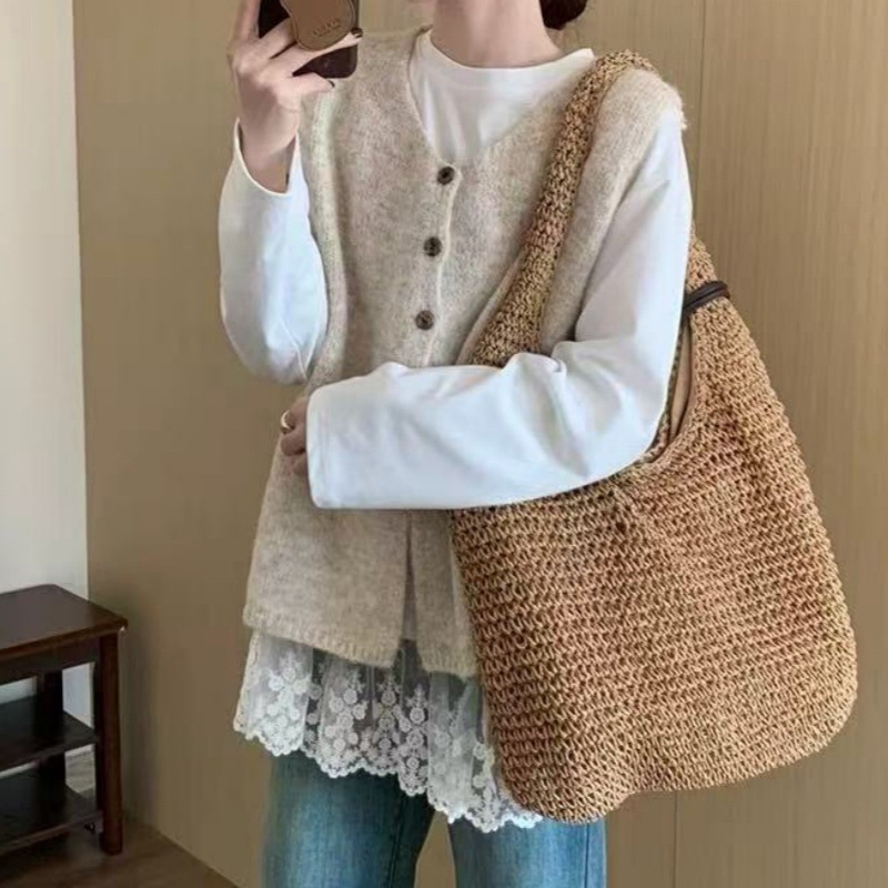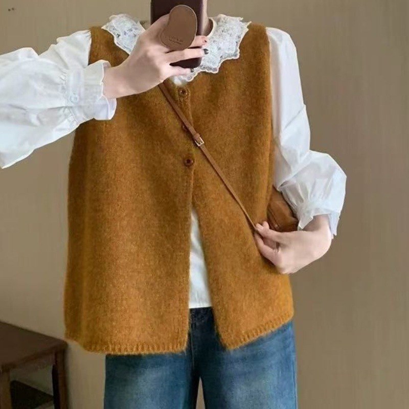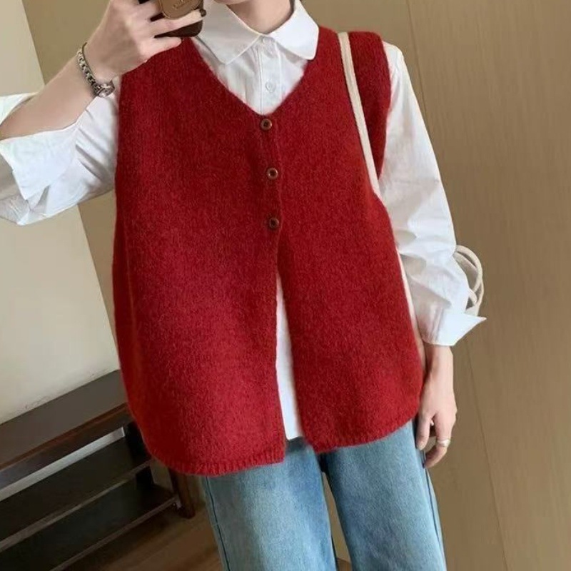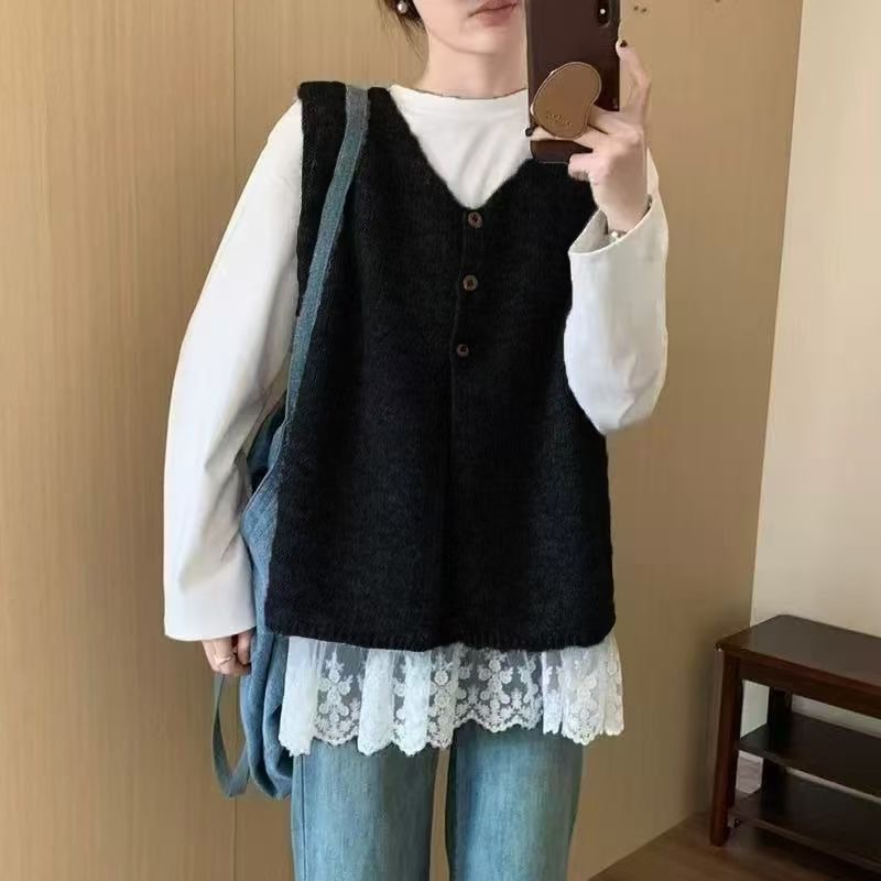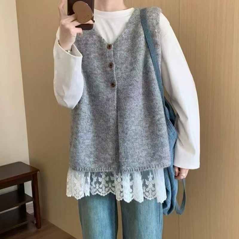 한국적인 분위기의 여성용 그레이 조끼 2025 초가을 새로운 스타일의 하이엔드 레이어드 조끼 스웨터 겉옷스토어 가기