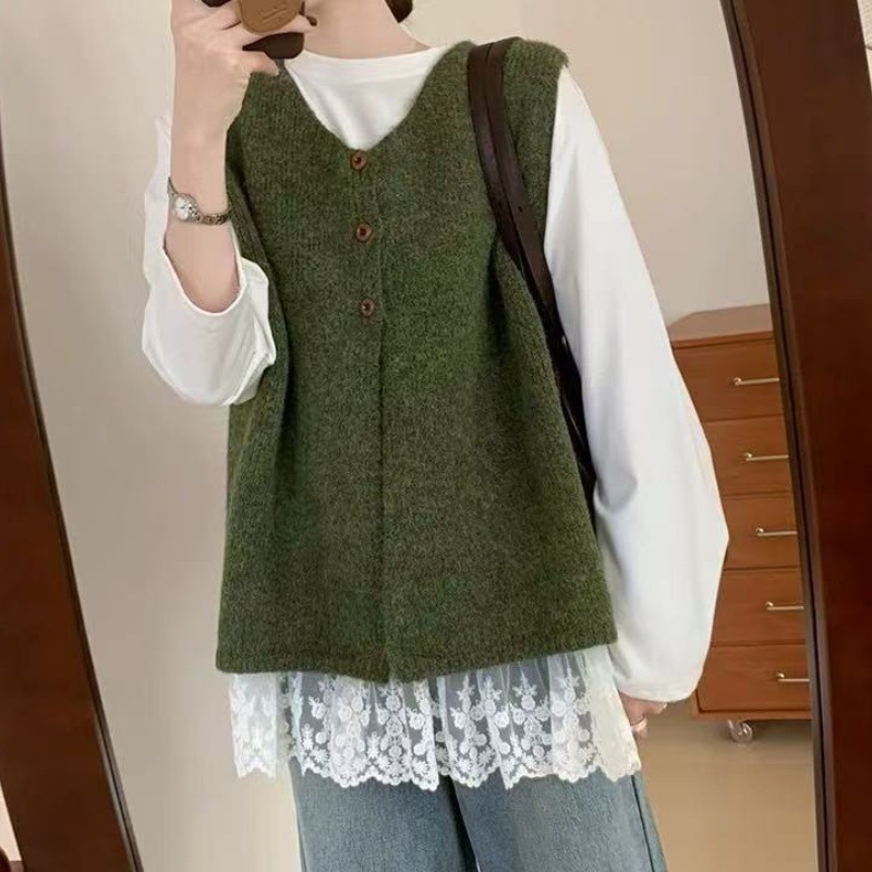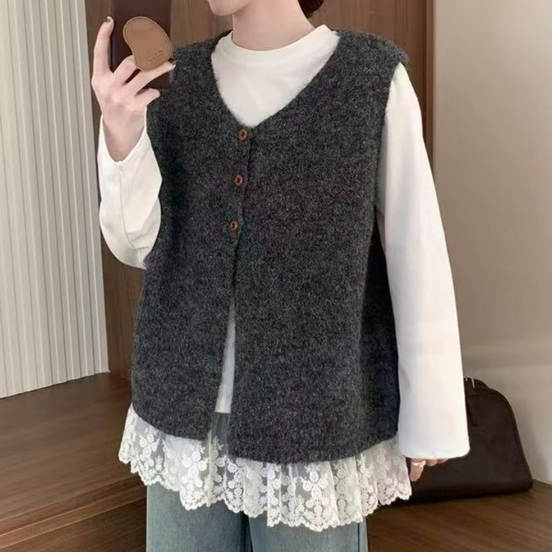 한국적인 분위기의 여성용 그레이 조끼 2025 초가을 새로운 스타일의 하이엔드 레이어드 조끼 스웨터 겉옷