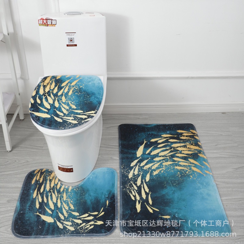 공장 직접 판매 수중 세계 3D 인쇄 화장실 바닥 매트 카펫 욕실 화장실 3 피스 세트 흡수성 목욕 매트스토어 가기