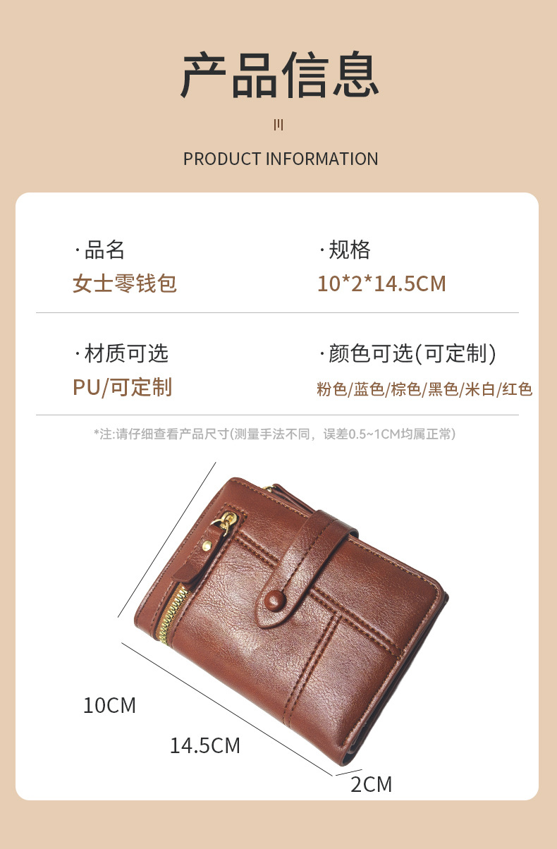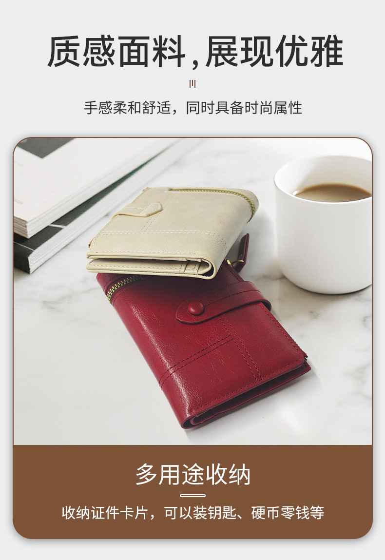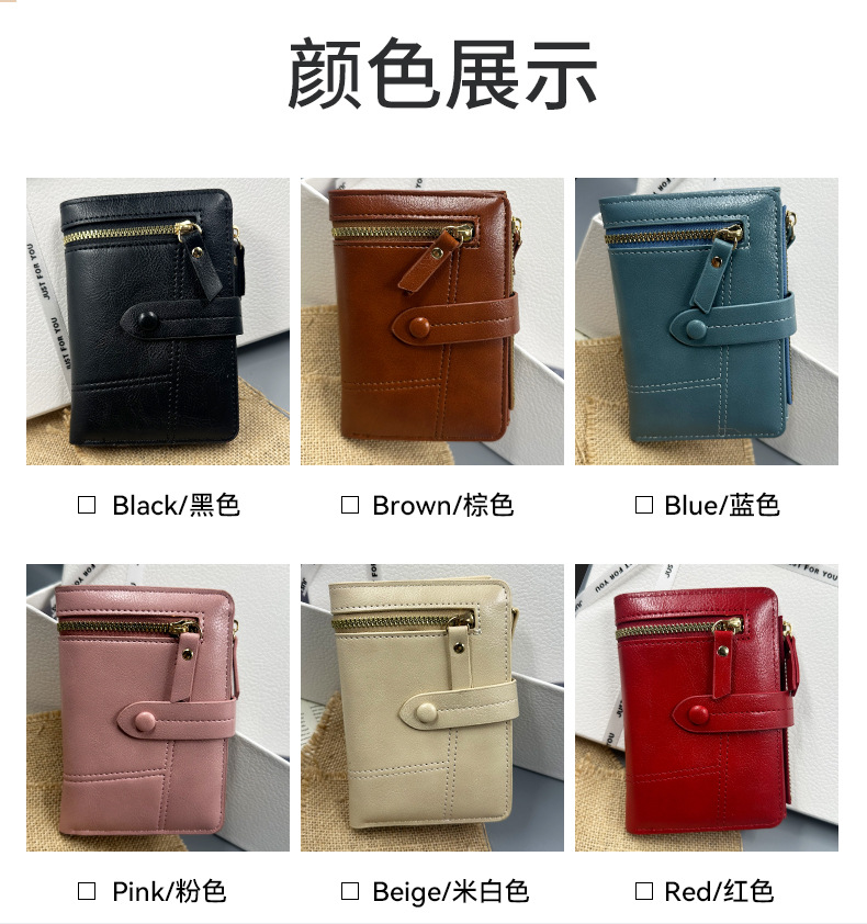 새로운 단색 여성 지갑 다기능 수납 여성용 동전 지갑 얇은 반접이식 지갑 카드 지갑 여성 도매스토어 가기