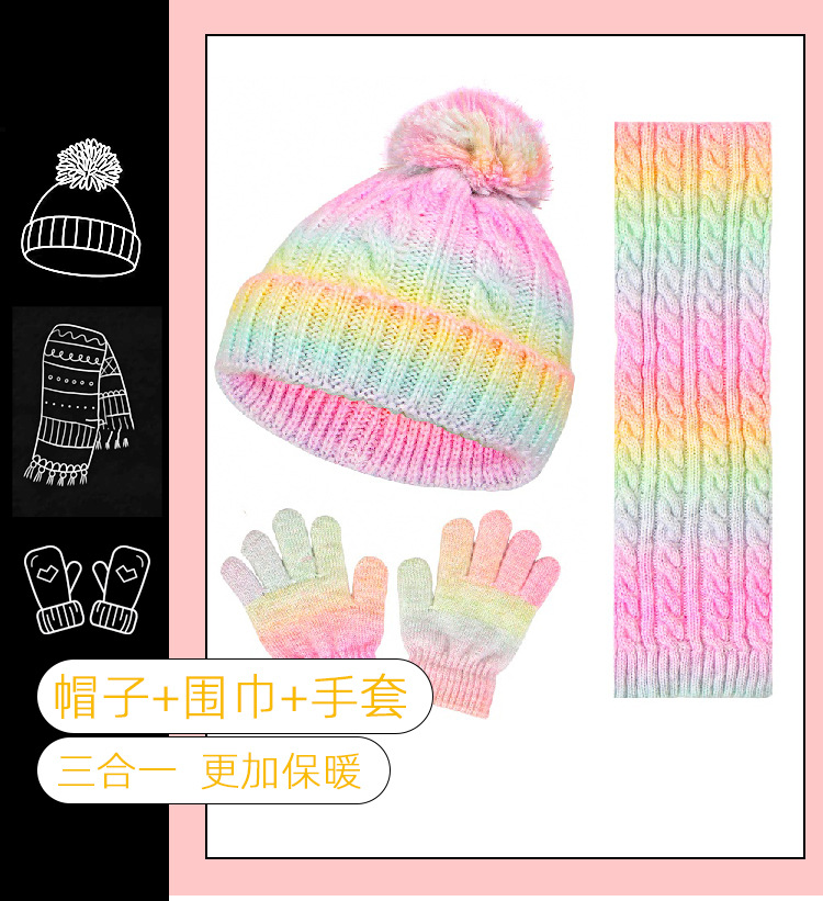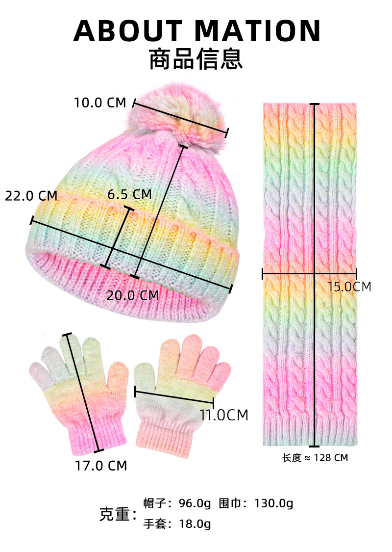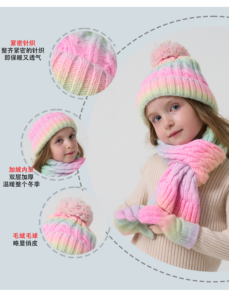 建议年龄3-10岁此款为帽子围脖手套三件套