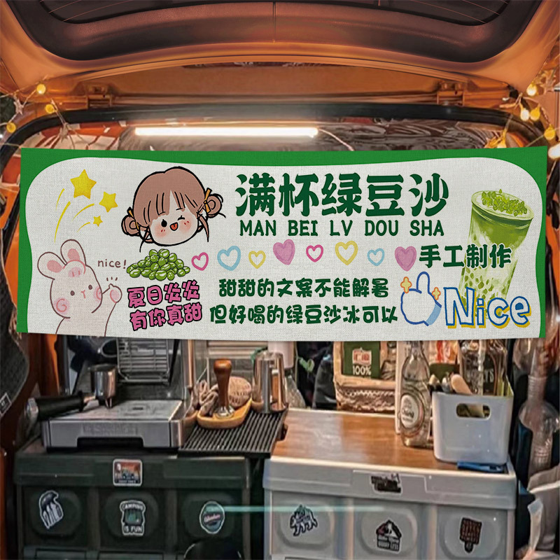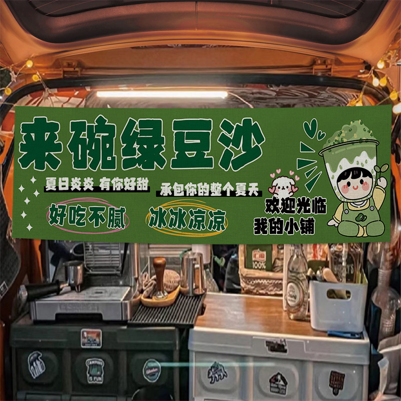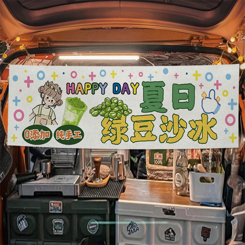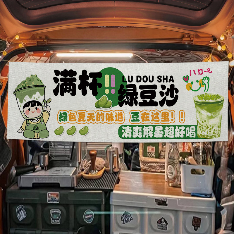 트렁크 스톨 걸이 천, 길가 시장 배너, 간판, 야시장 녹두 페이스트 트롤리 광고 천스토어 가기