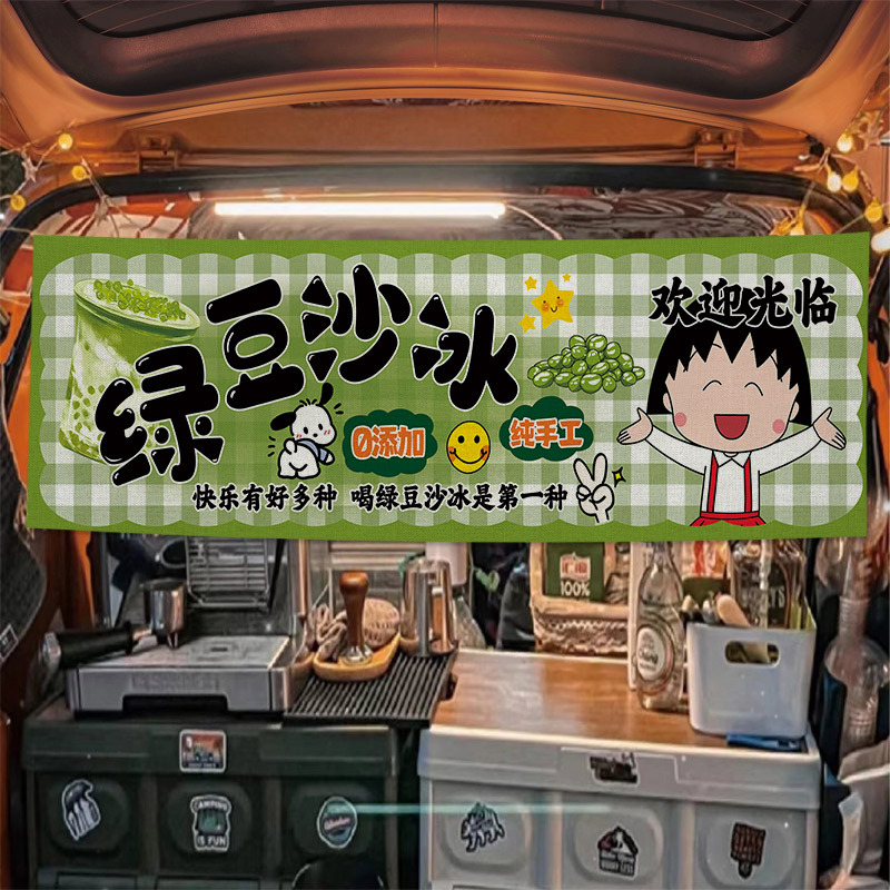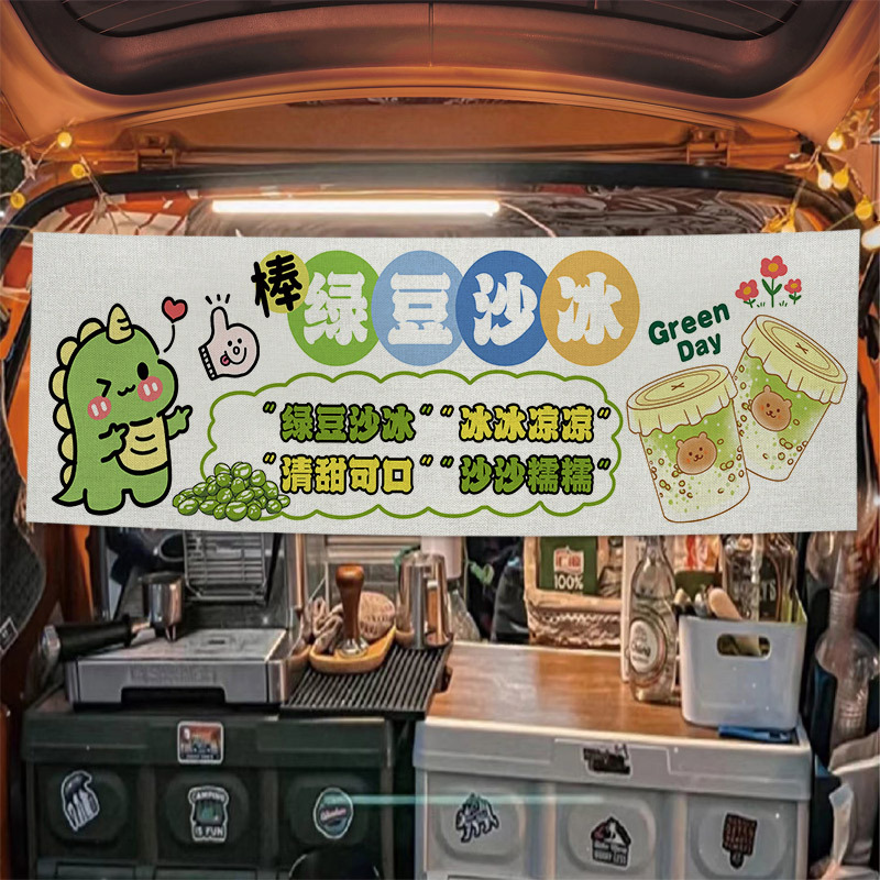 트렁크 스톨 걸이 천, 길가 시장 배너, 간판, 야시장 녹두 페이스트 트롤리 광고 천
