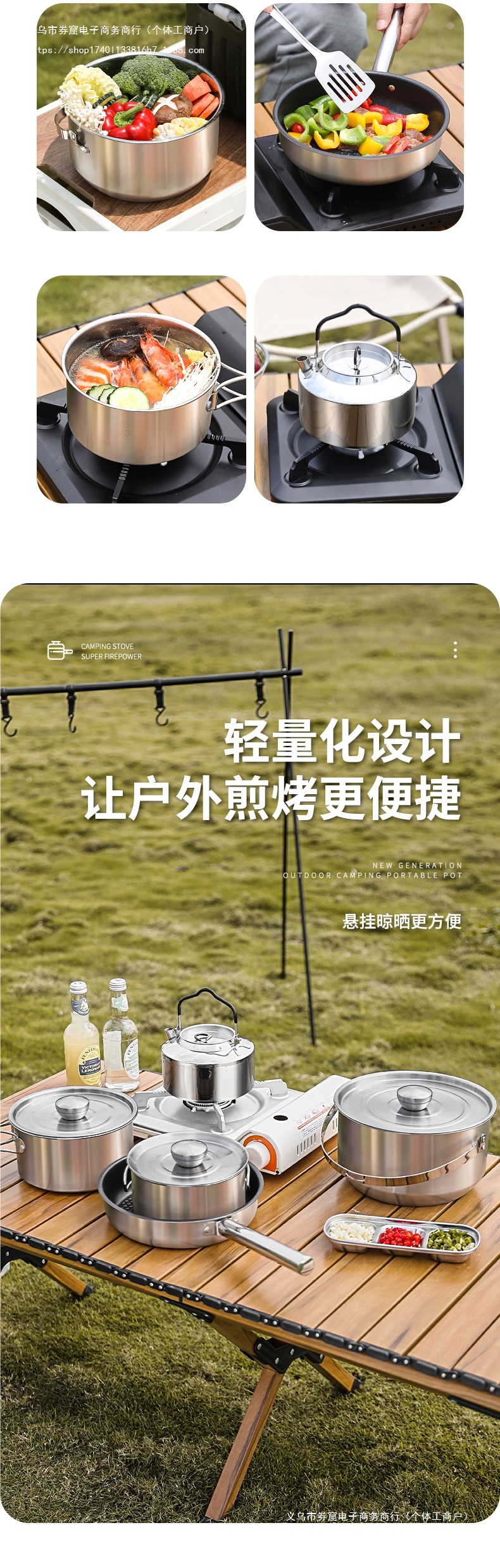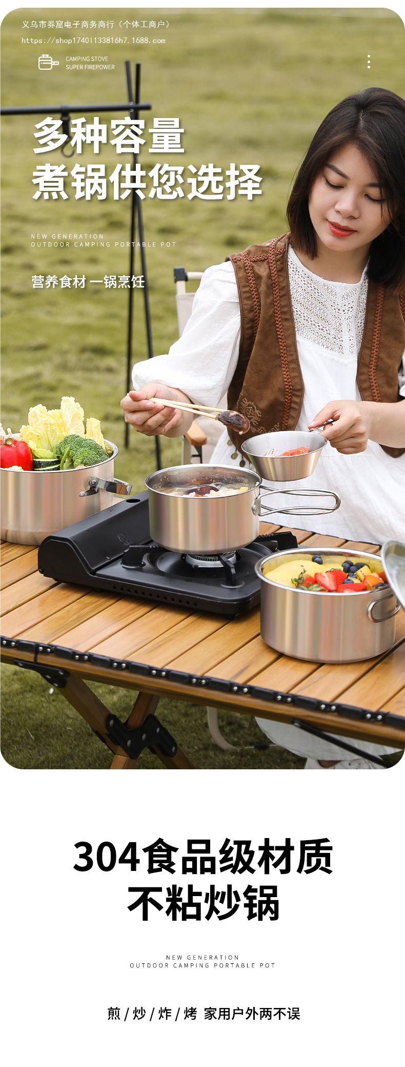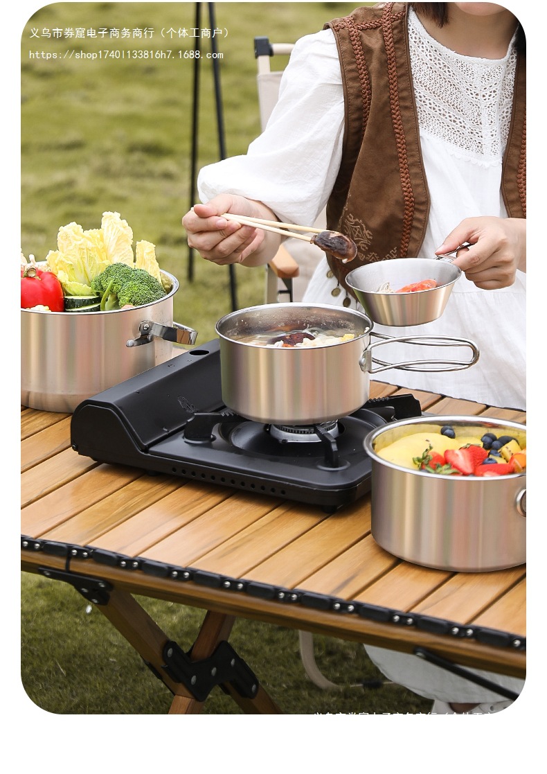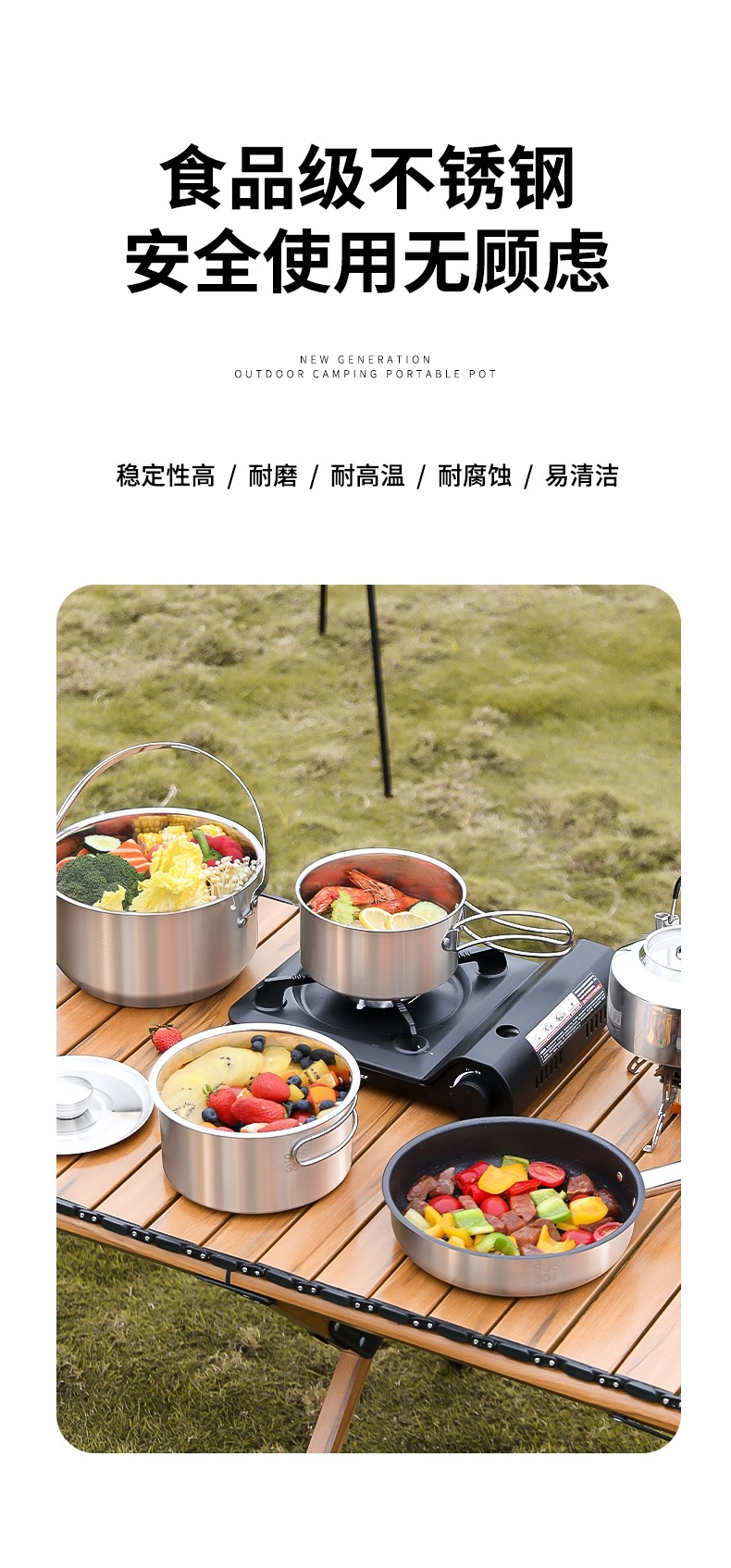 304 스테인레스 스틸 야외 냄비 캠핑 피크닉 장비 주전자 휴대용 스토브 세트 요리 냄비 서스펜션 냄비스토어 가기