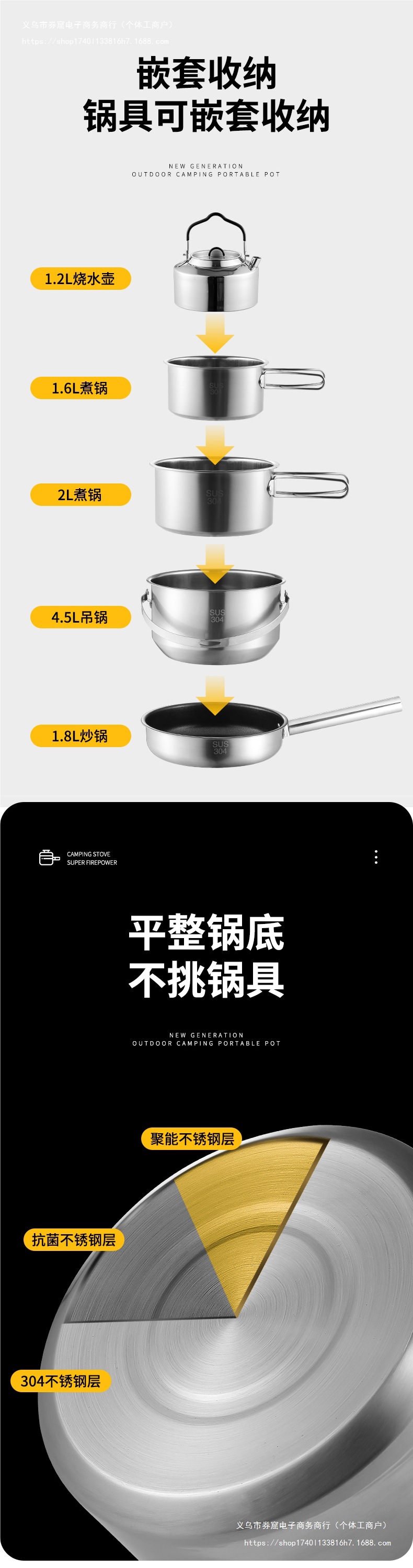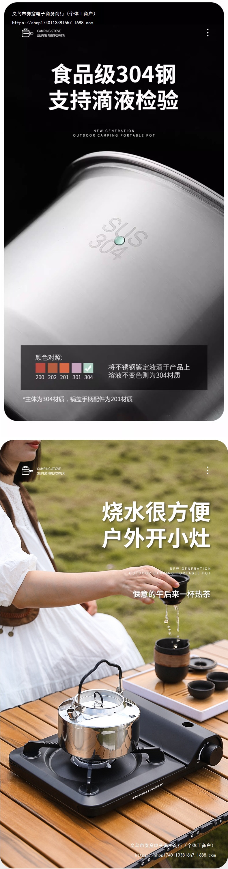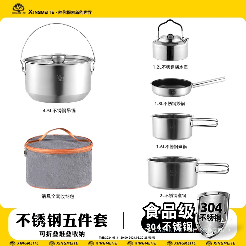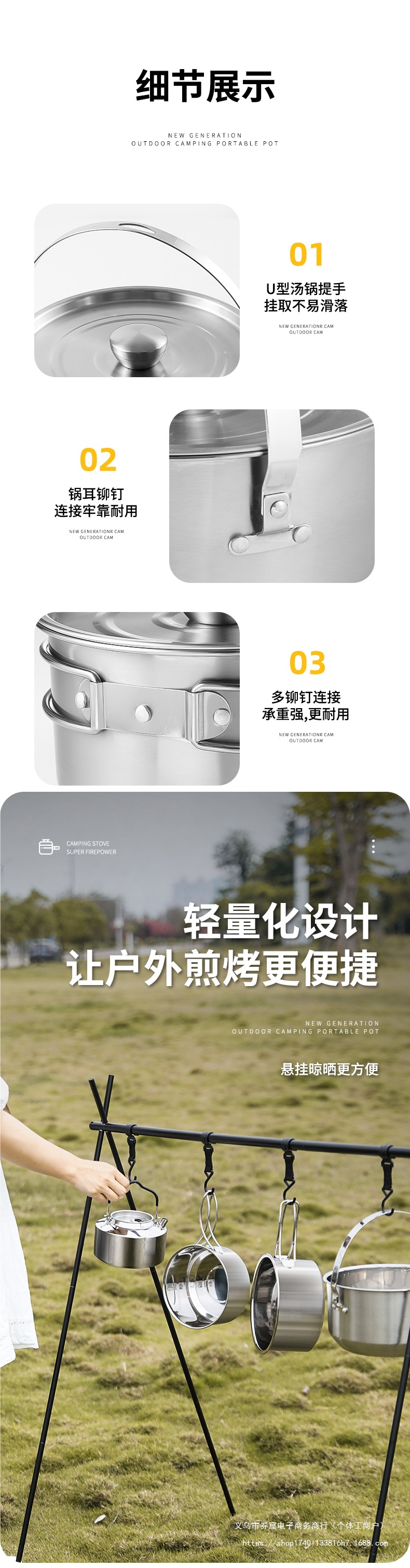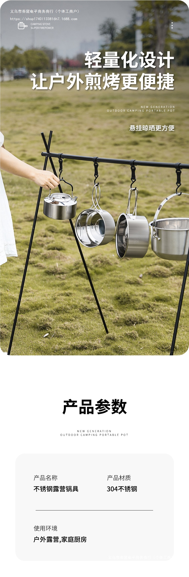 304 스테인레스 스틸 야외 냄비 캠핑 피크닉 장비 주전자 휴대용 스토브 세트 요리 냄비 서스펜션 냄비스토어 가기