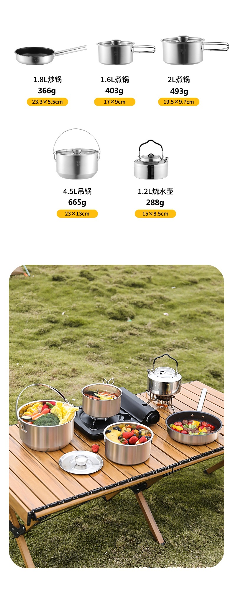 304 스테인레스 스틸 야외 냄비 캠핑 피크닉 장비 주전자 휴대용 스토브 세트 요리 냄비 서스펜션 냄비