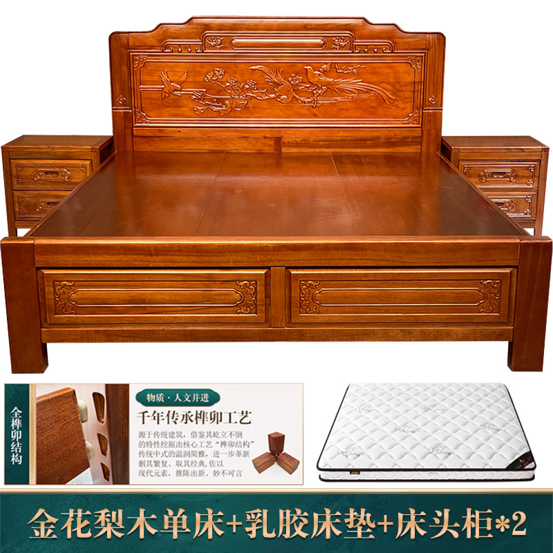 • 풀 장붓구멍과 장부 로즈우드 싱글 침대 + 친환경 라텍스 스프링 매트 + 캐비닛 2개