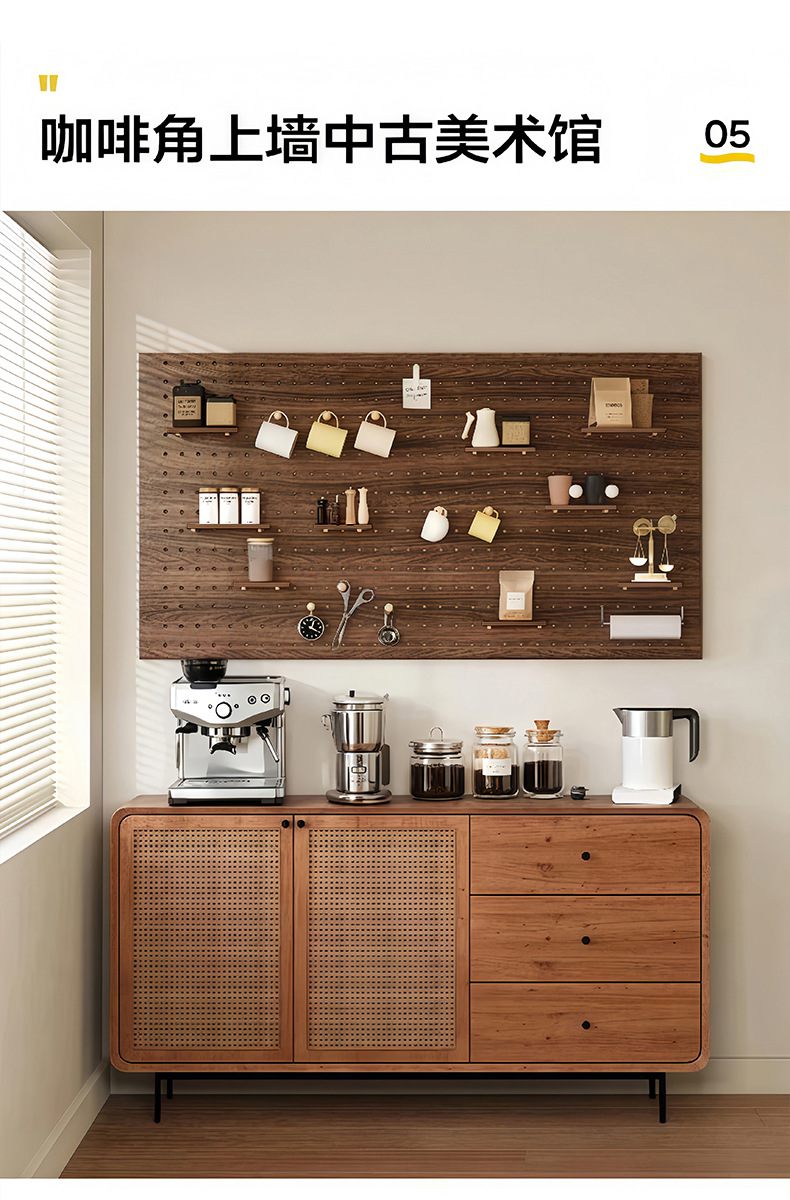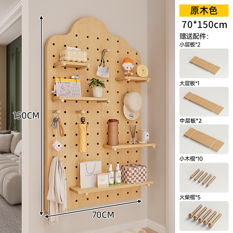 단단한 나무 구멍 보드 벽 선반 입구 현관 호두 색상 벽 장식 스토리지 디스플레이