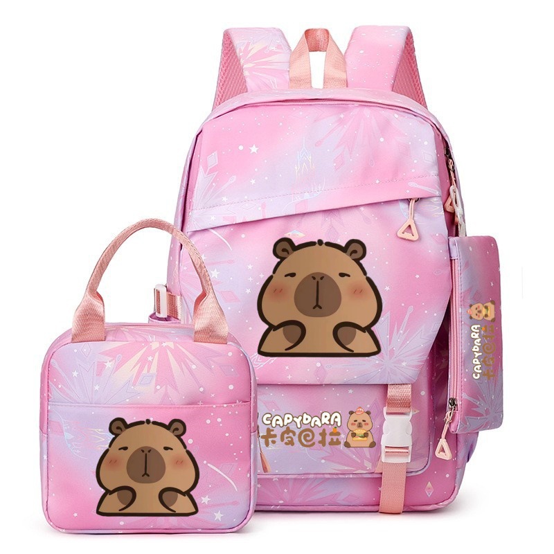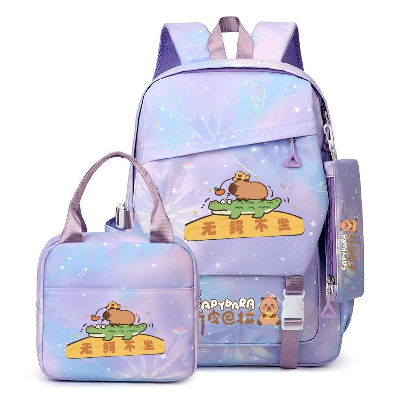 초등 및 중등 학생을 위한 국경 간 Kapibala 새 책가방 3피스 세트 대용량 경량 야외 배낭