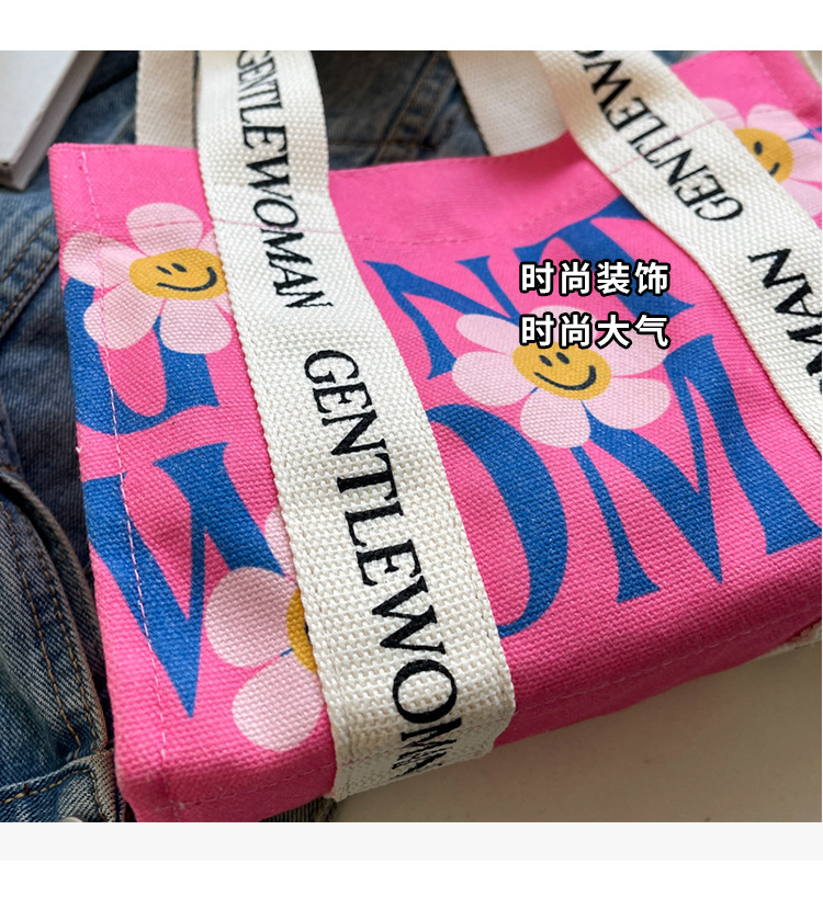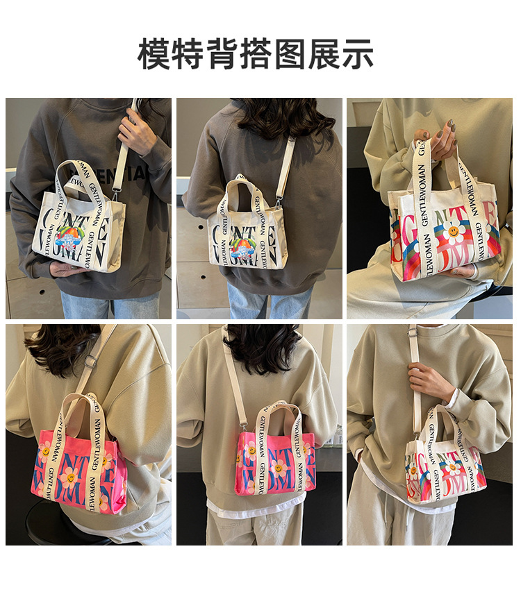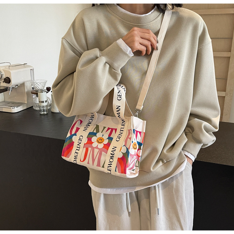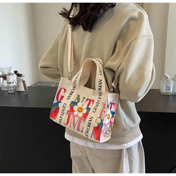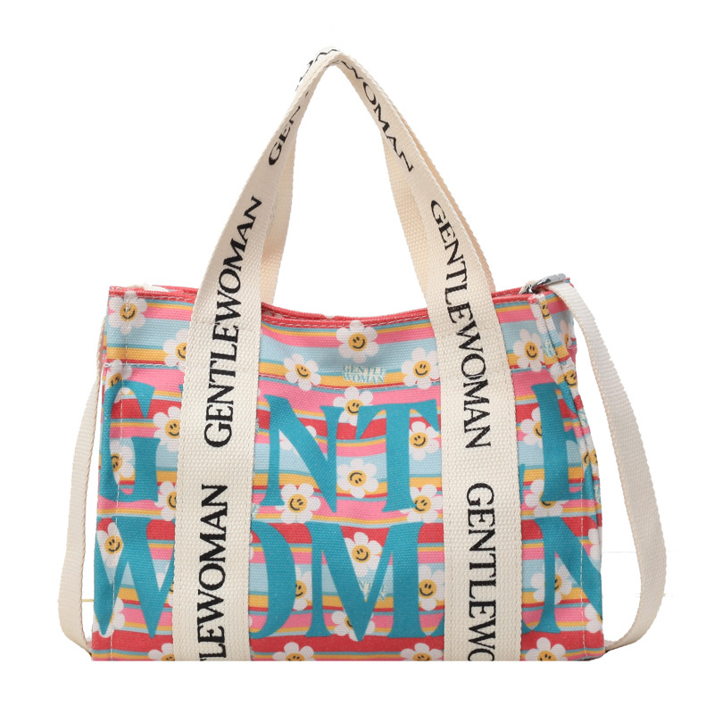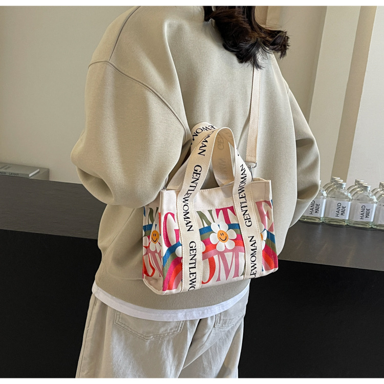 국경 간 다채로운 문자 인쇄 작은 캔버스 가방 봄과 여름 새로운 만화 틈새 토트 백 캐주얼 숄더 백스토어 가기