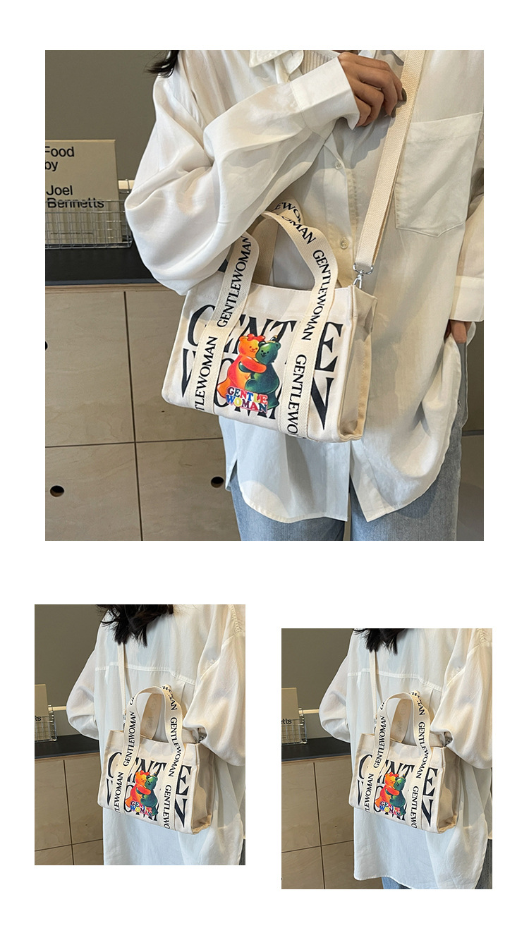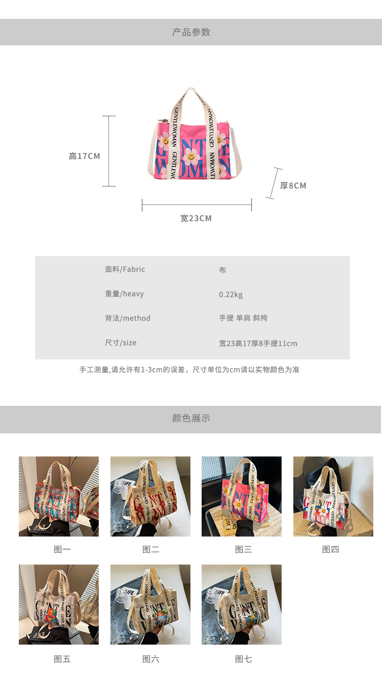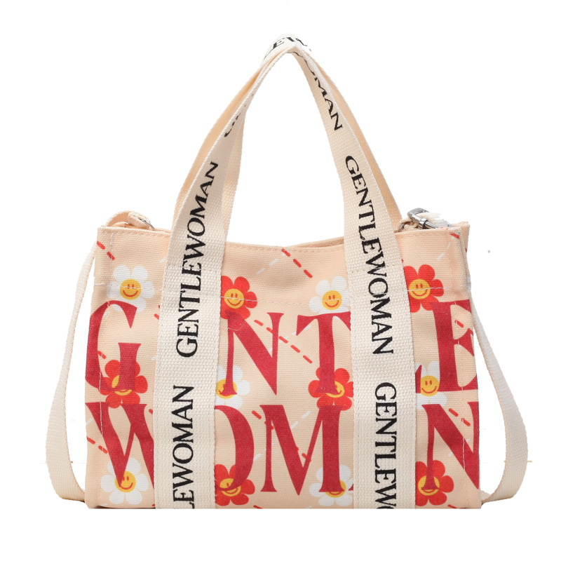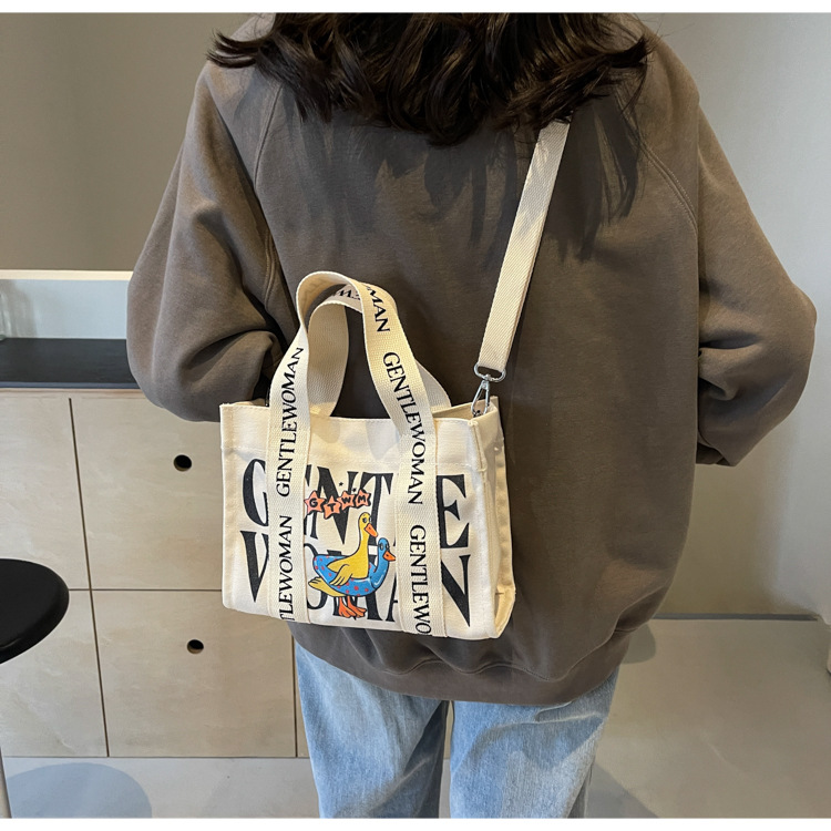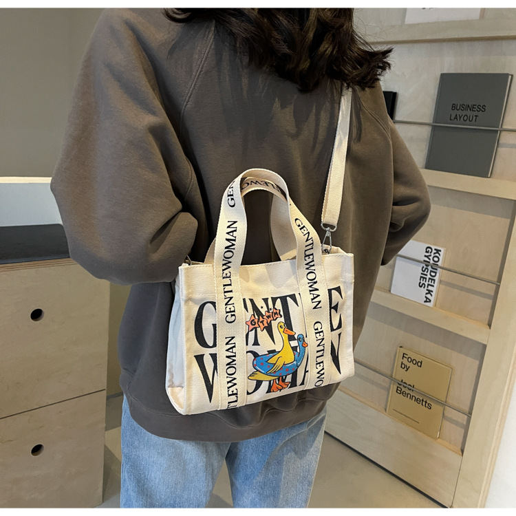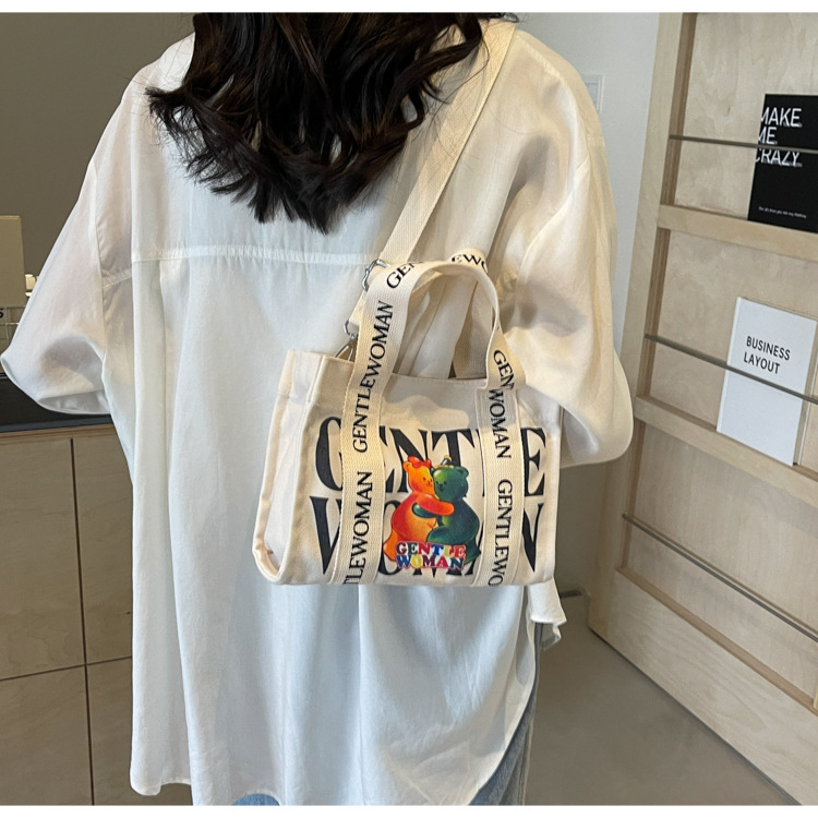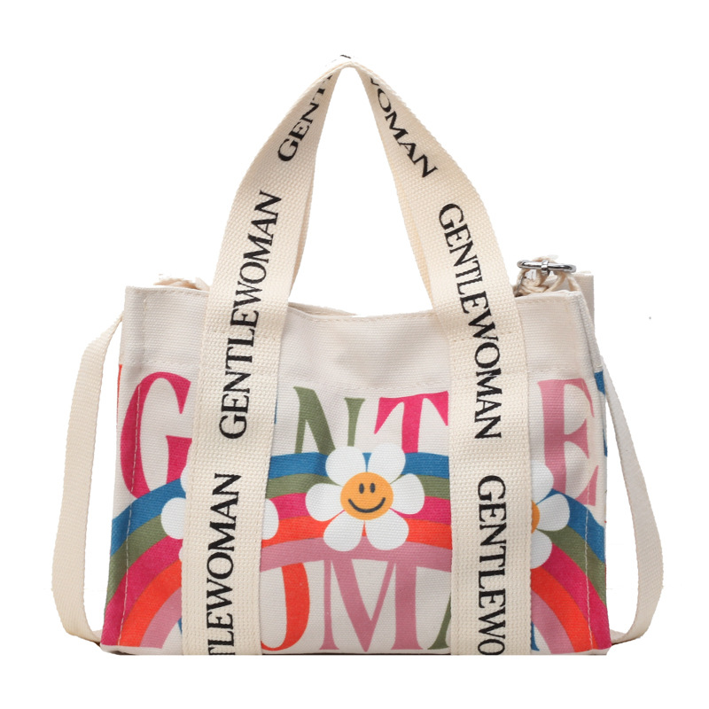 국경 간 다채로운 문자 인쇄 작은 캔버스 가방 봄과 여름 새로운 만화 틈새 토트 백 캐주얼 숄더 백