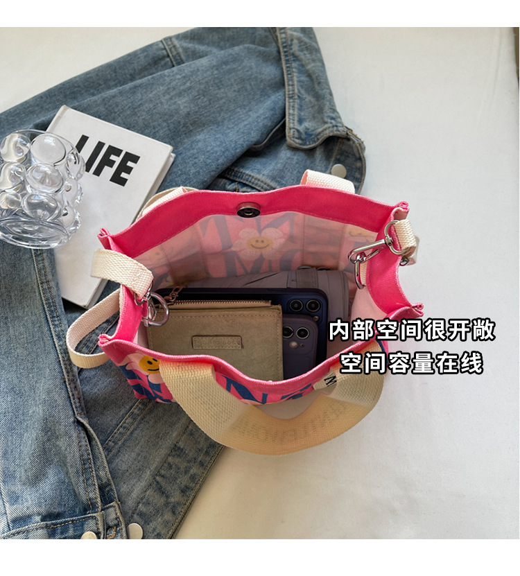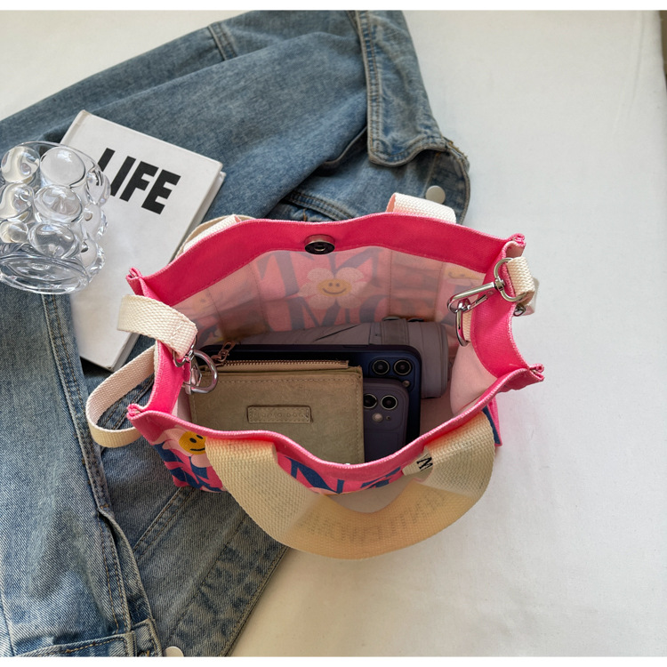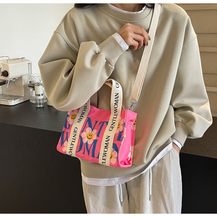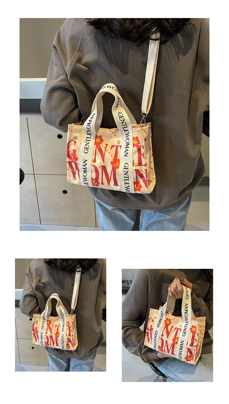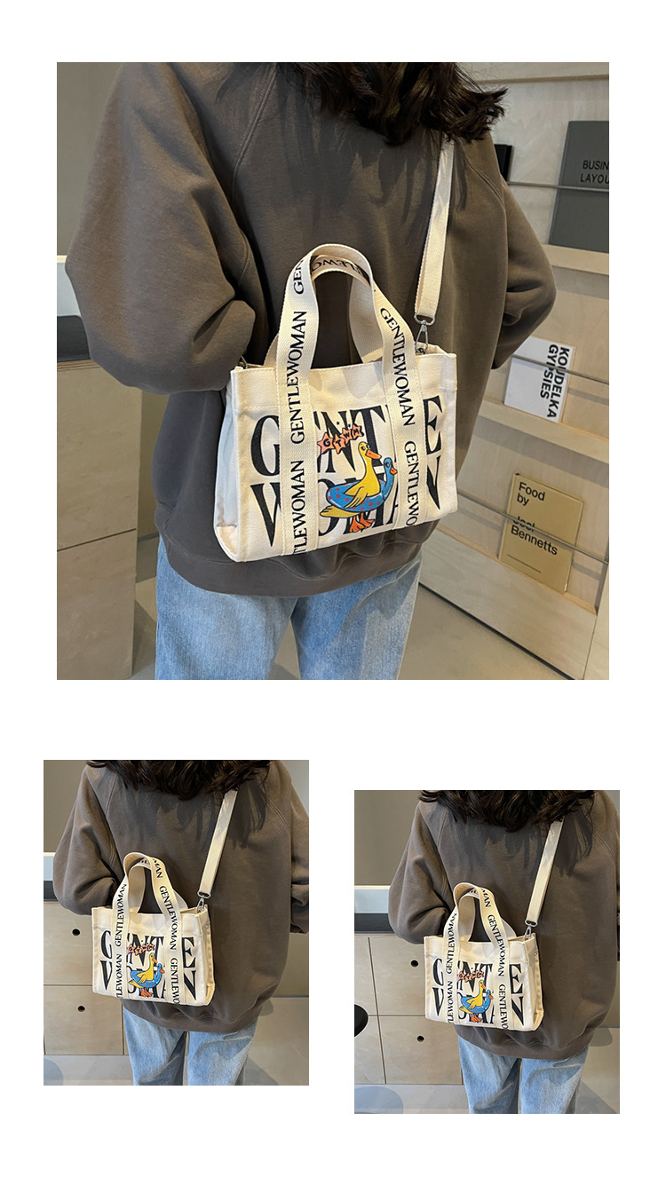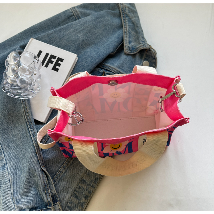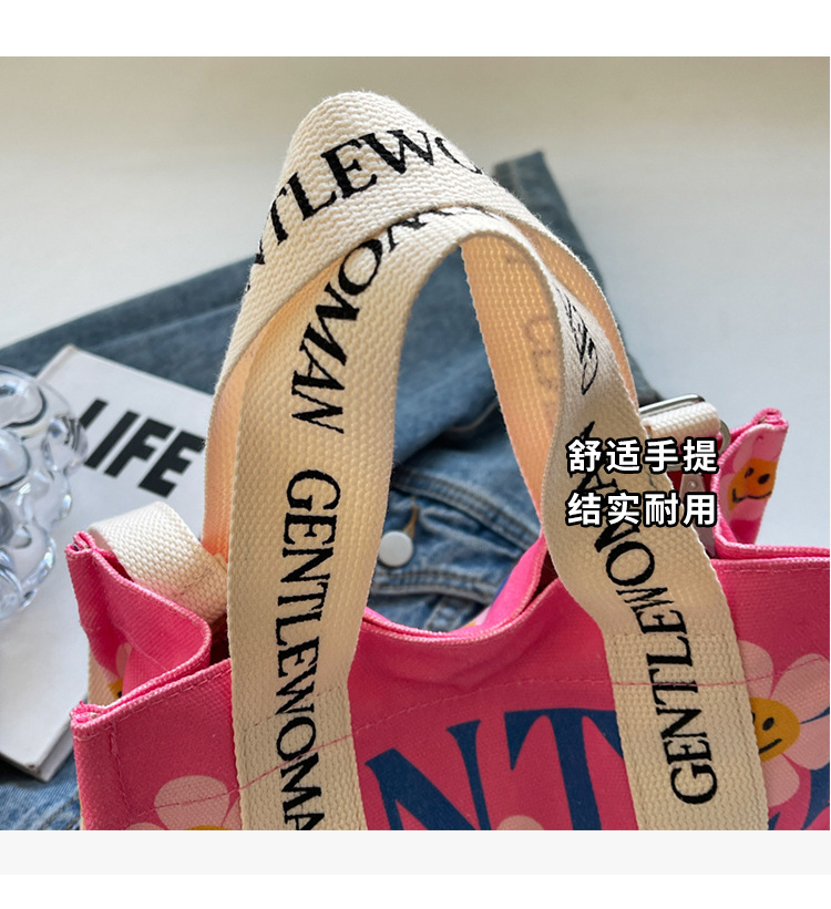 국경 간 다채로운 문자 인쇄 작은 캔버스 가방 봄과 여름 새로운 만화 틈새 토트 백 캐주얼 숄더 백