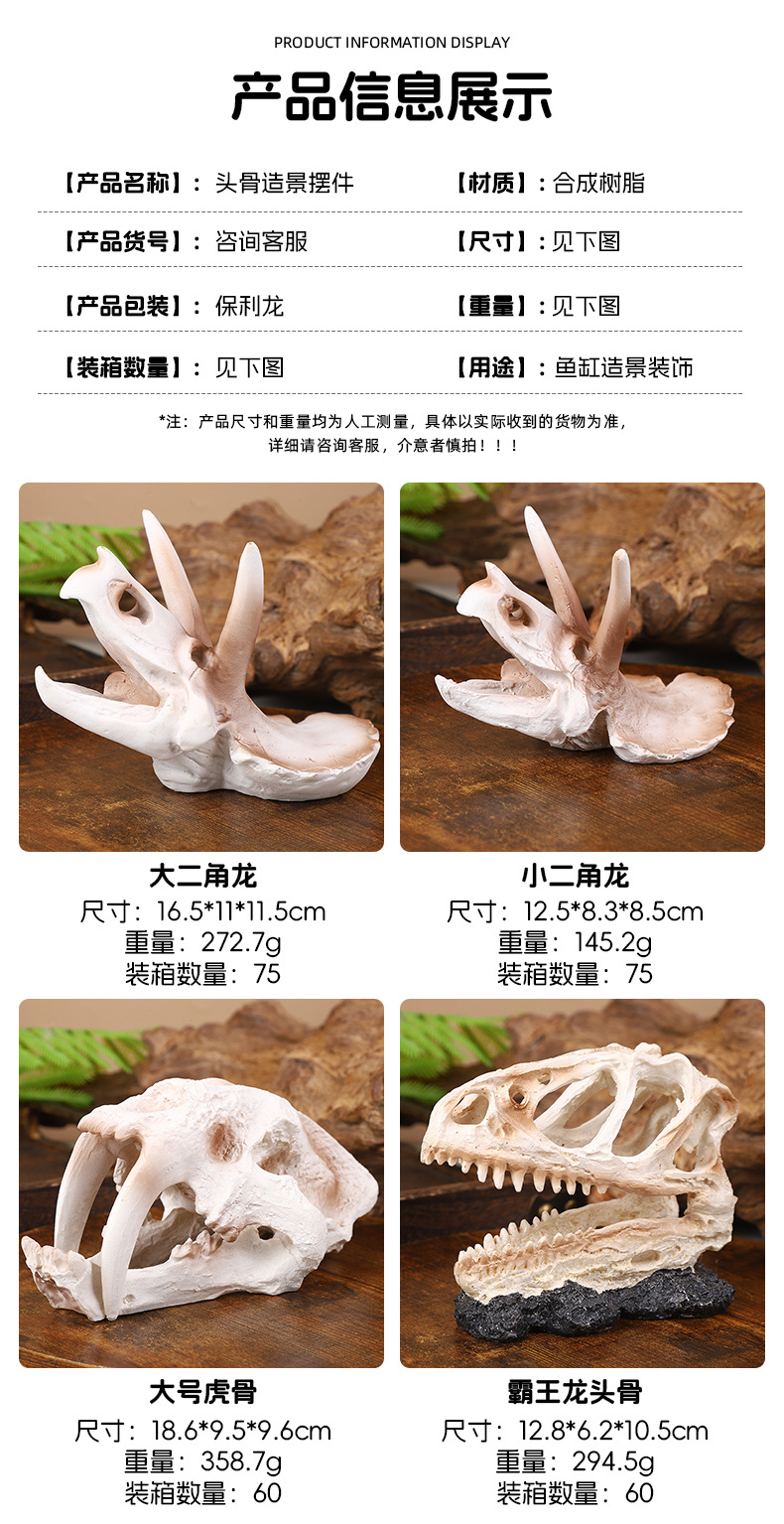 공룡 두개골 피난처 물고기 탱크 조경 장식품 수지 시뮬레이션 두개골 석가대 수생 식물 수족관 장식