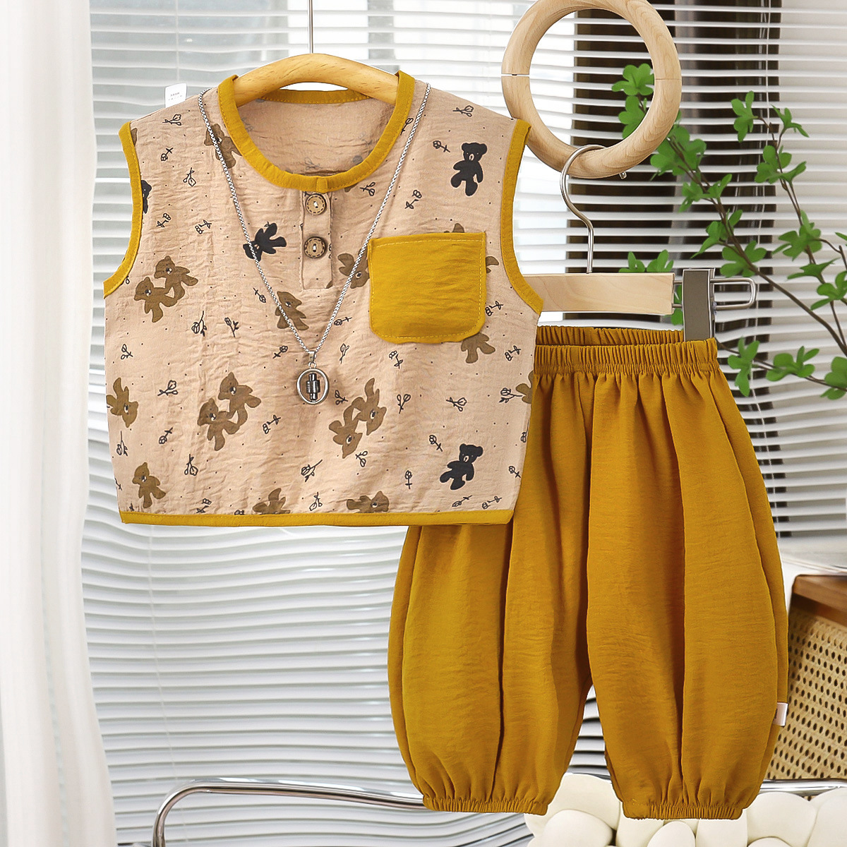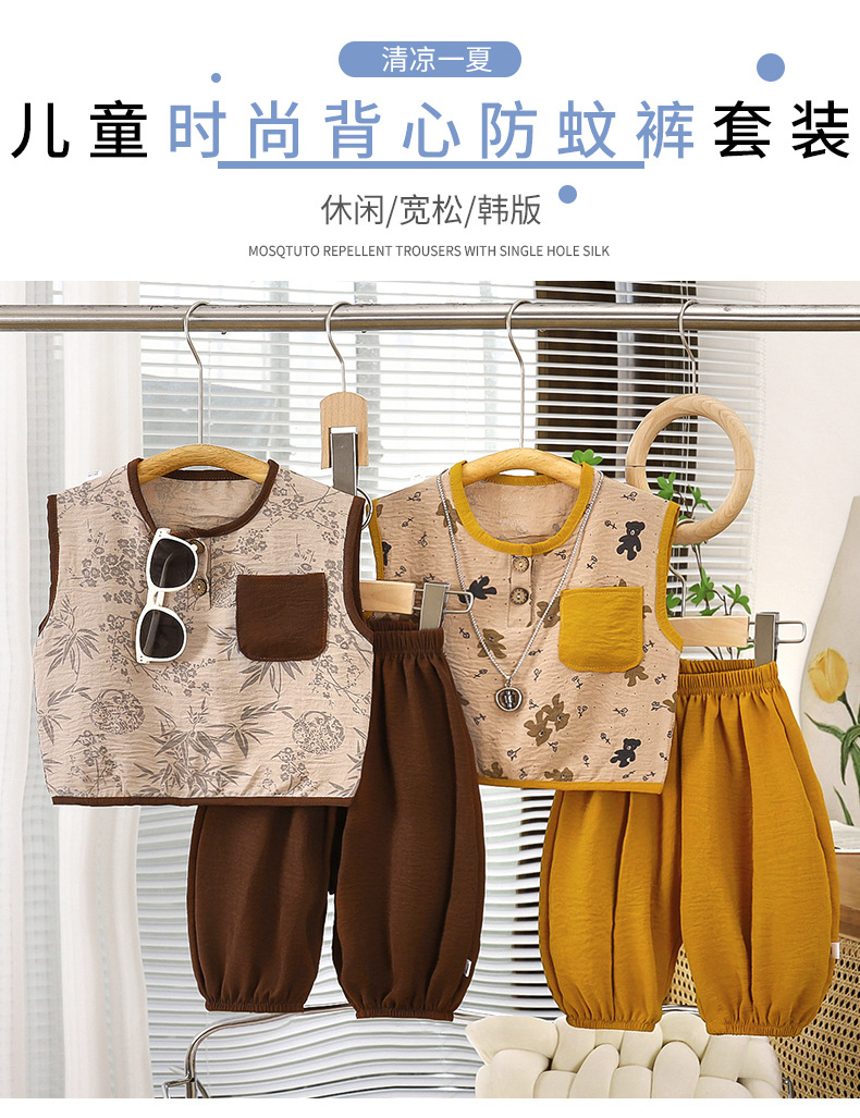 새로운 한국 스타일 여름 어린이 정장 어린이 조끼 정장 여름 민소매 반바지 투피스 세트 서양식 얇은 스타일 도매