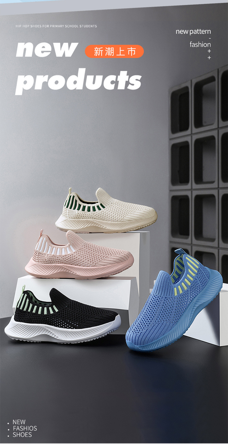 대외 무역 아동 신발 봄과 가을 게으른 슬립 온 소년과 소녀 플라이 짠 메쉬 통기성 경량 러닝 아동 스포츠 신발