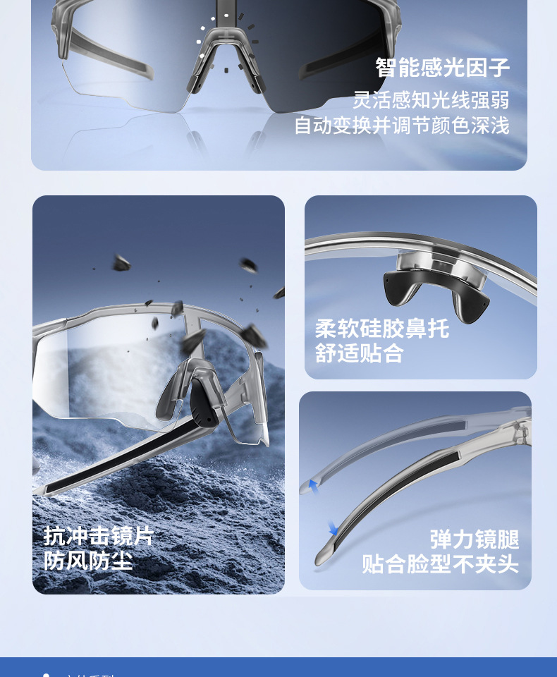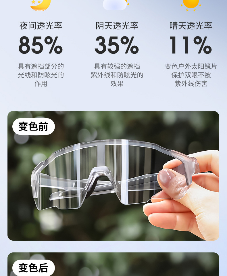 새로운 TR90 일체형 색상 변경 사이클링 안경 도로 자전거 주야간 겸용 야외 스포츠 러닝 방풍 및 모래 방지 고글