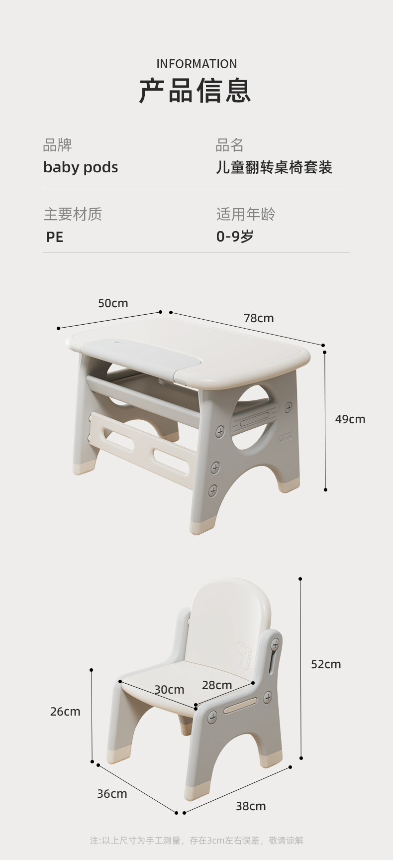 • 칠할 수 있는 어린이용 테이블과 의자 + 무료 수성펜 5개 + 지우개(테이블 1개, 의자 1개)