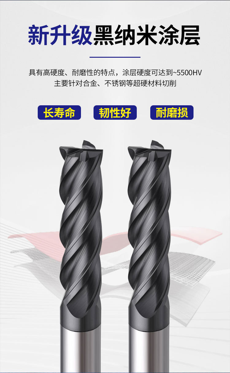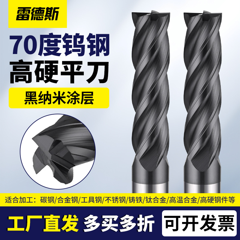 70도 검정색 나노 코팅 텅스텐 강철 밀링 커터 스테인레스 스틸 304P20P22 일반 강철 부품 고효율 절단 플랫 커터스토어 가기