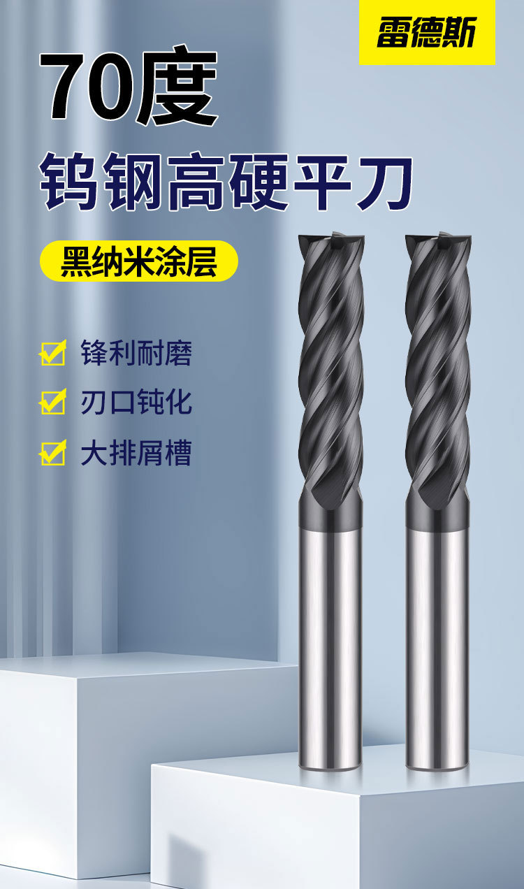 70도 검정색 나노 코팅 텅스텐 강철 밀링 커터 스테인레스 스틸 304P20P22 일반 강철 부품 고효율 절단 플랫 커터