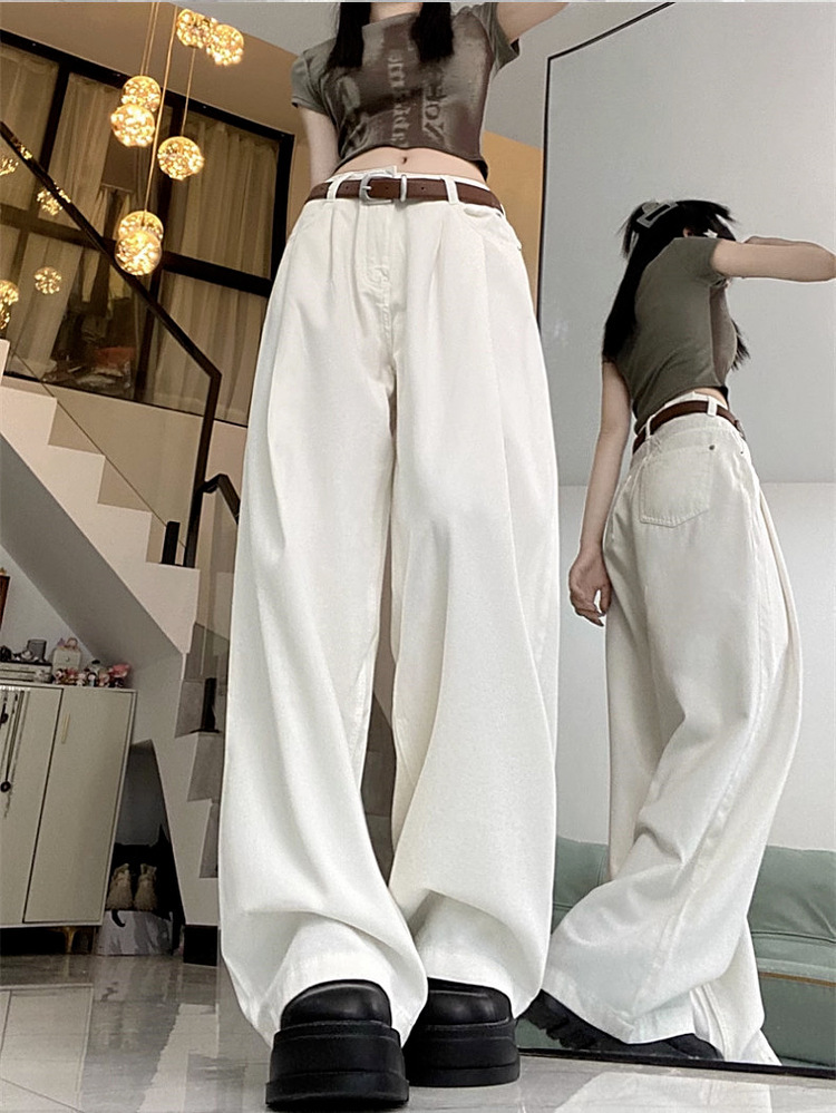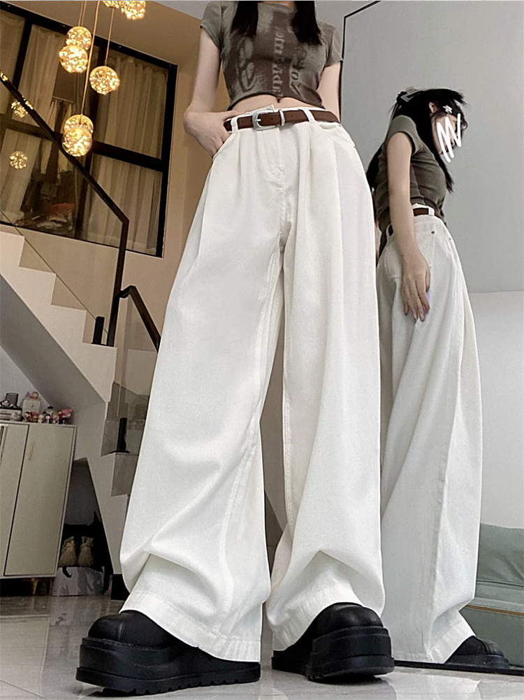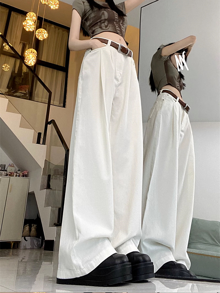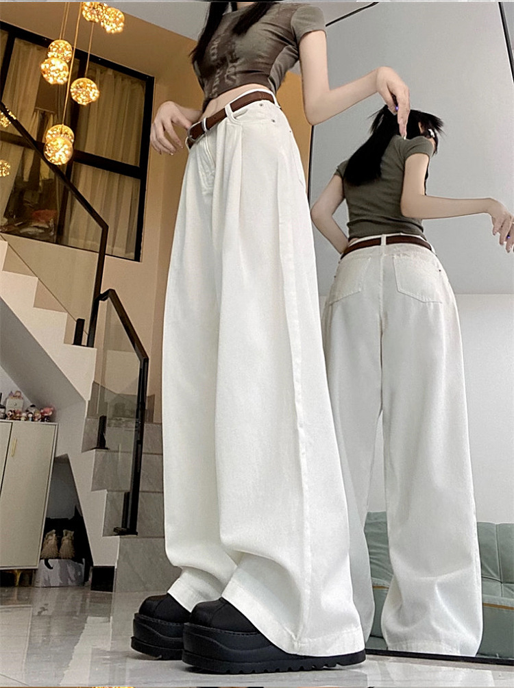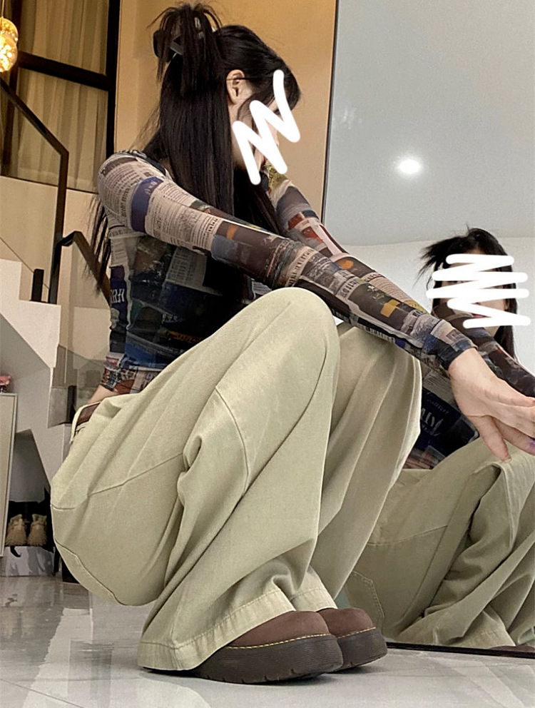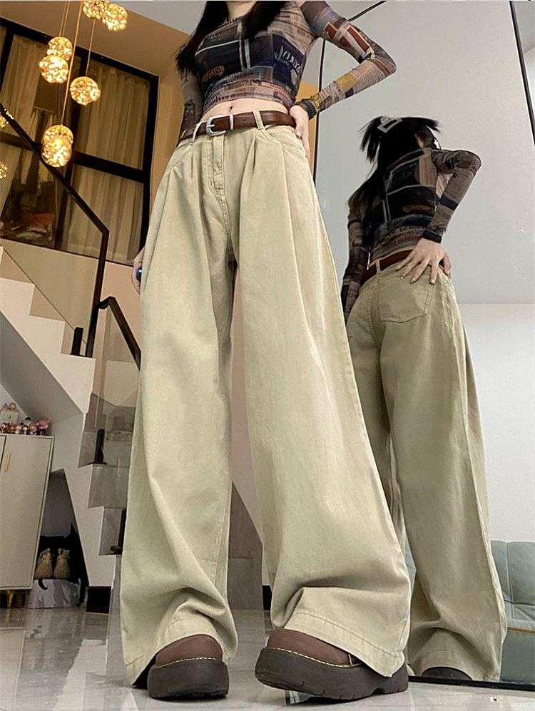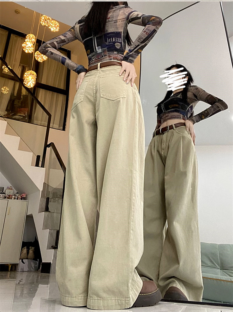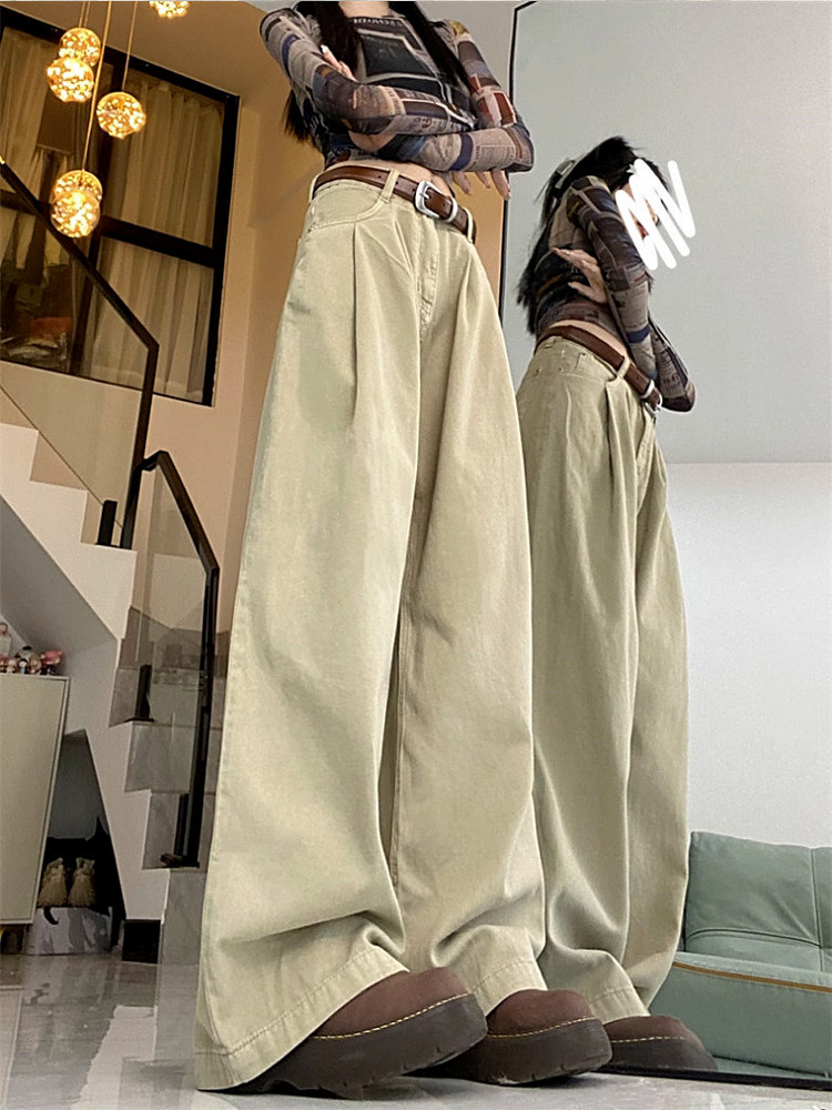 2025 신상 카키 작업복 데님 와이드 팬츠 여성 초가을 인기 루즈 캐주얼 스트레이트 팬츠스토어 가기