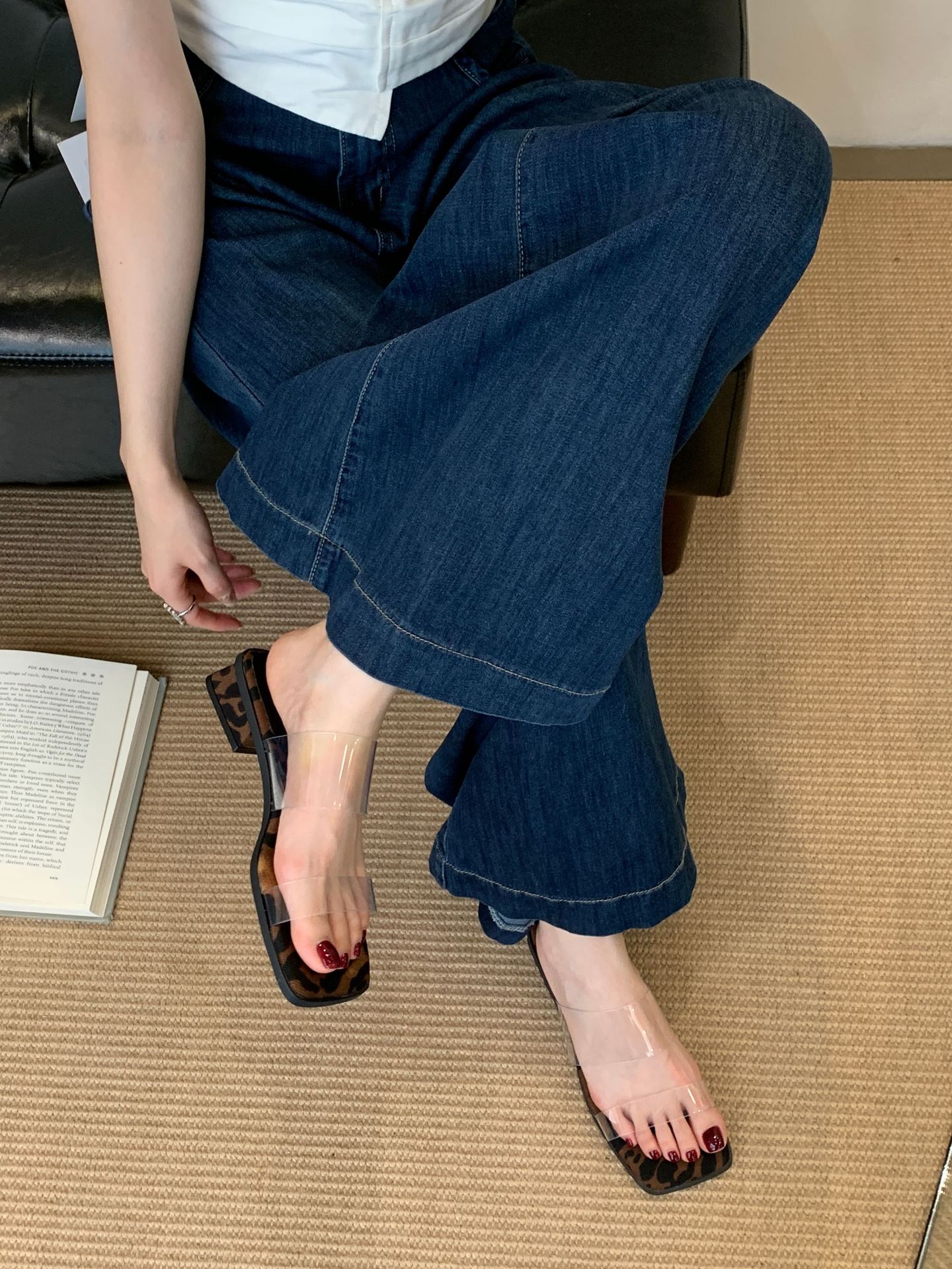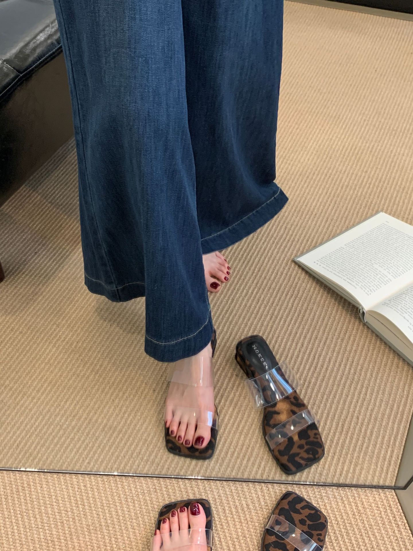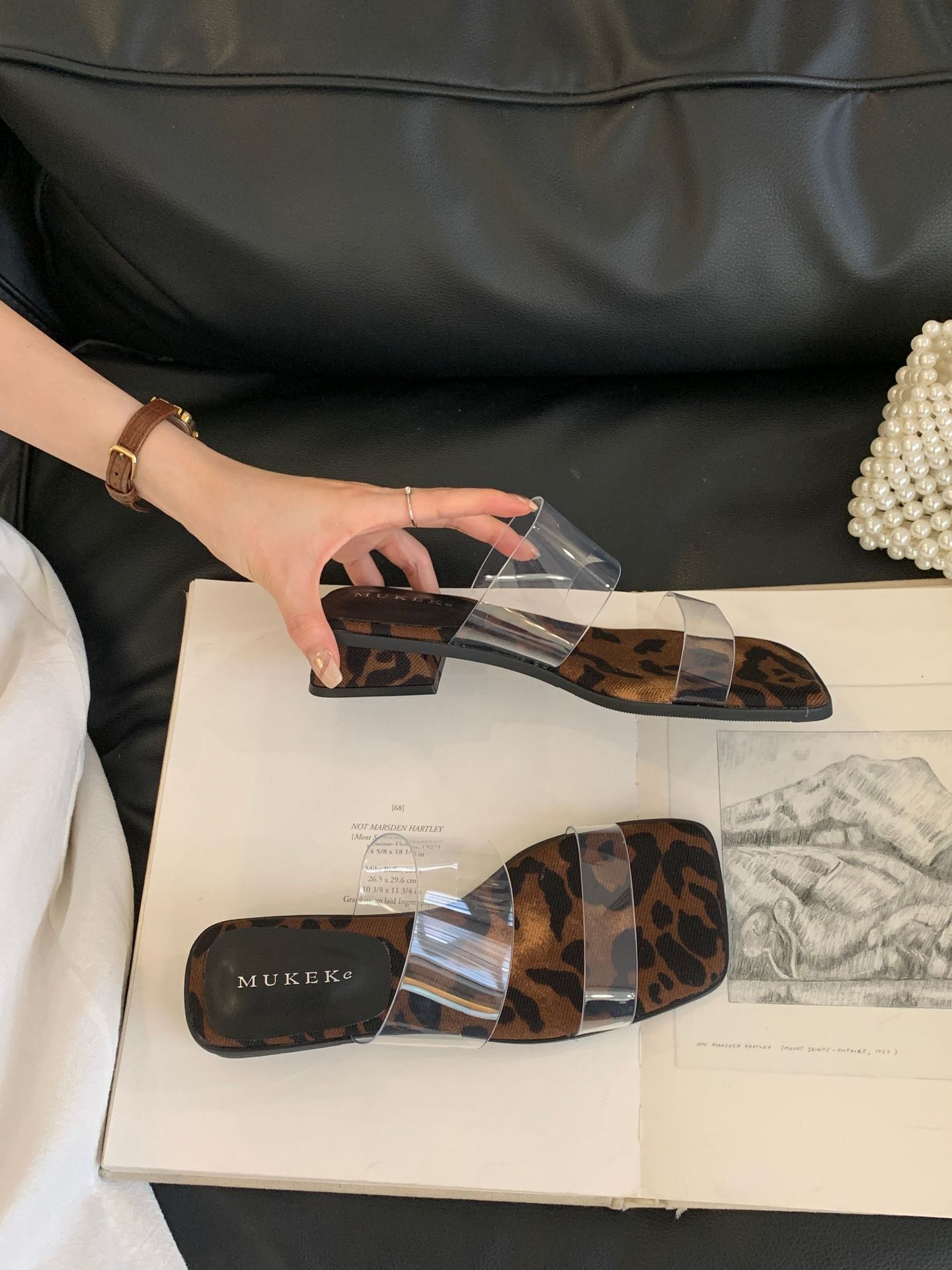 두꺼운 굽 투명 스트랩 프렌치 샌들 요정 신발 2025 새로운 여름 기질 스커트와 레오파드 프린트 샌들스토어 가기
