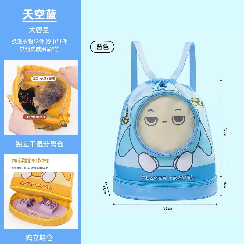 수영 수납 가방, 어린이용 건식 및 습식 분리 피트니스 스포츠 장비 해변 수납 가방, 귀엽고 휴대 가능하며 대용량스토어 가기