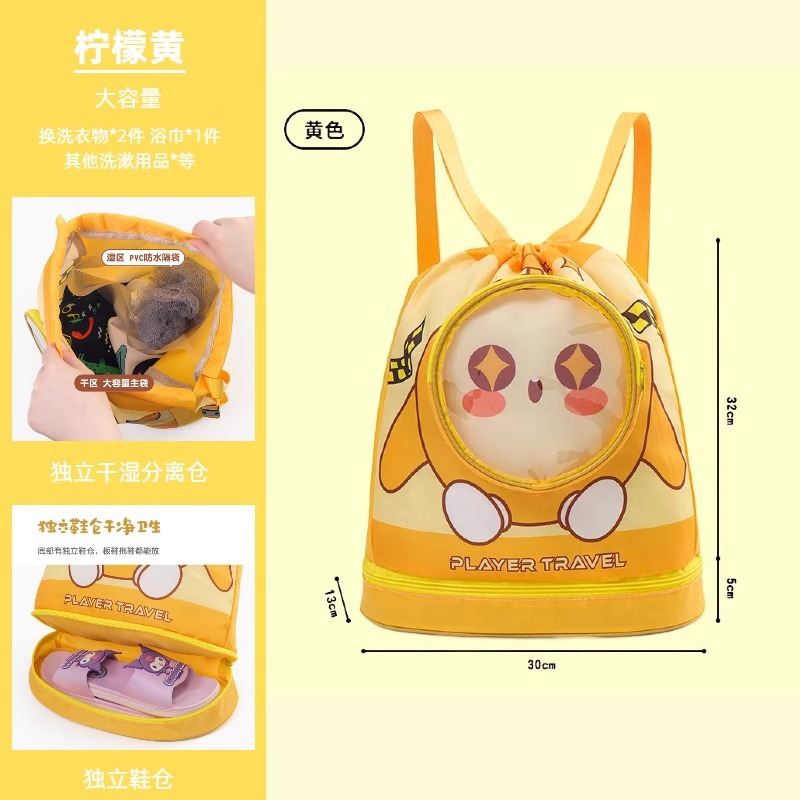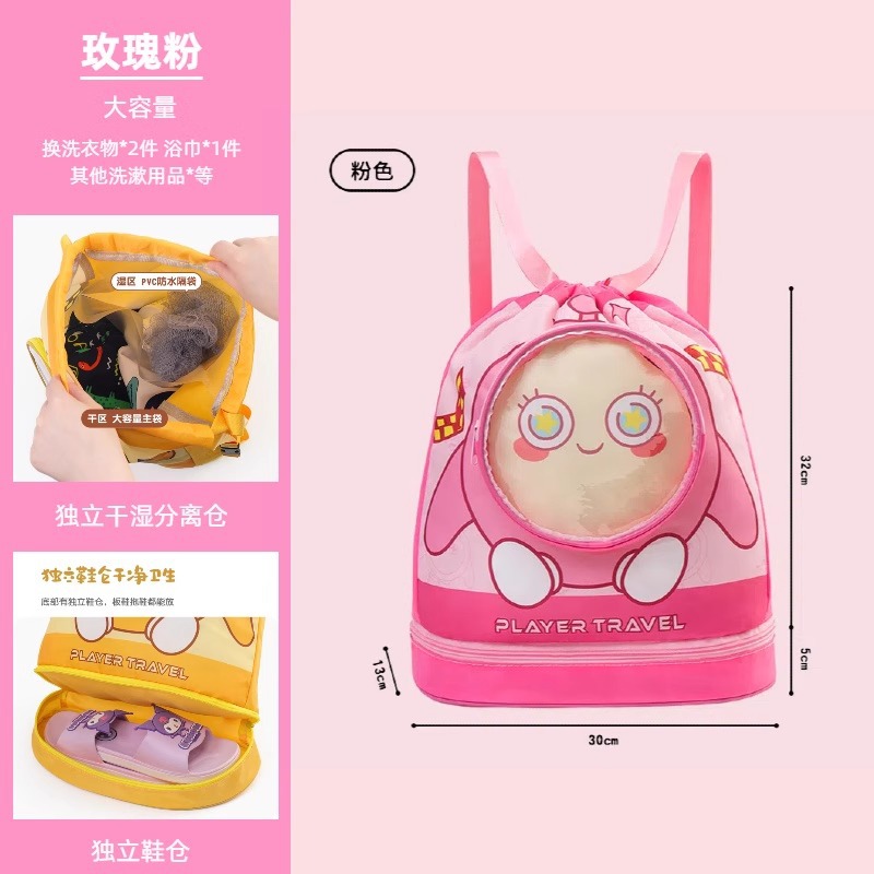 수영 수납 가방, 어린이용 건식 및 습식 분리 피트니스 스포츠 장비 해변 수납 가방, 귀엽고 휴대 가능하며 대용량