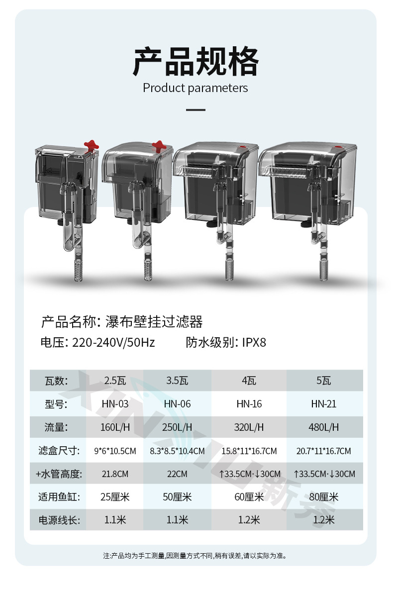 신입생 수조 수족관 필터 외부 폭포 벽걸이 형 물 순환 시스템 물 정화 필터 산소 순환