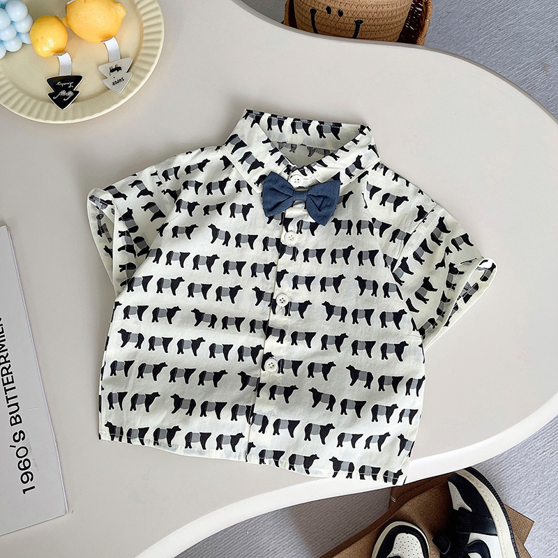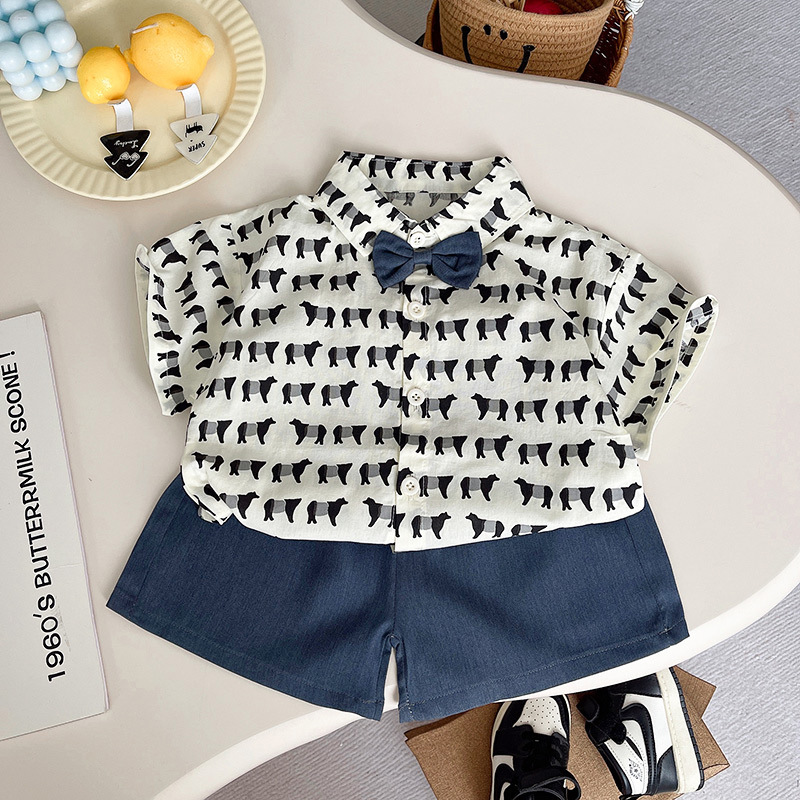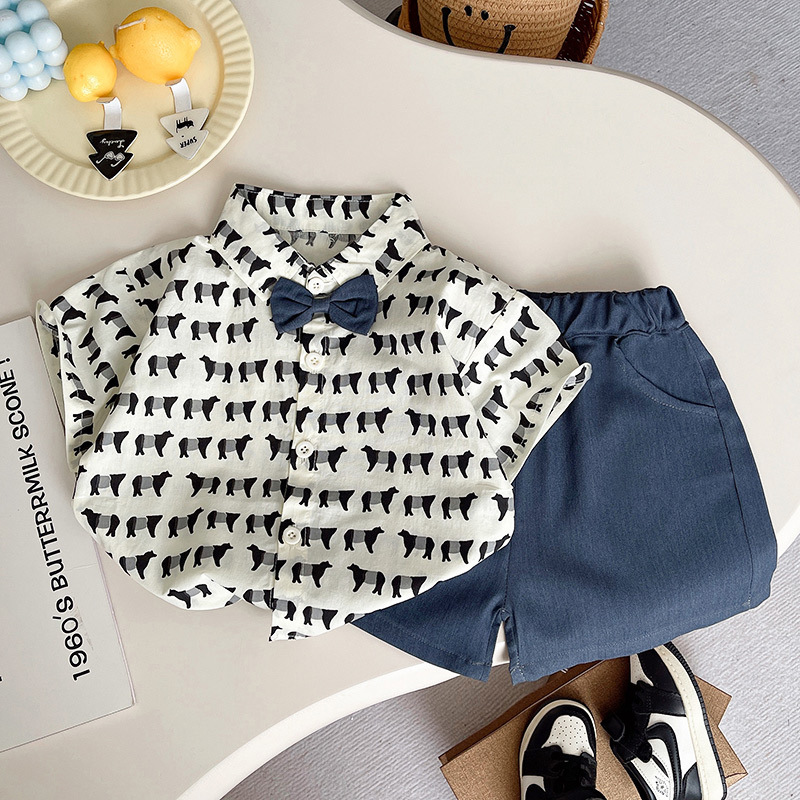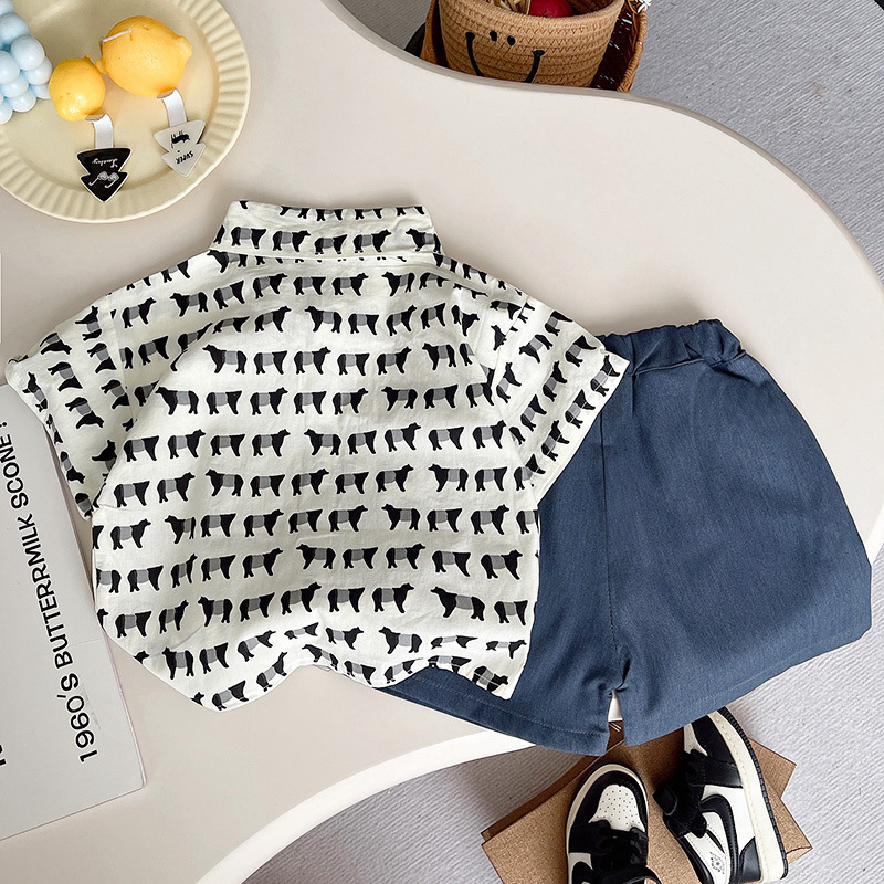소년 2025 새로운 여름 정장 반팔 스트리트 캐주얼 셔츠 투피스 세트 어린이 여름 스타일 반바지스토어 가기