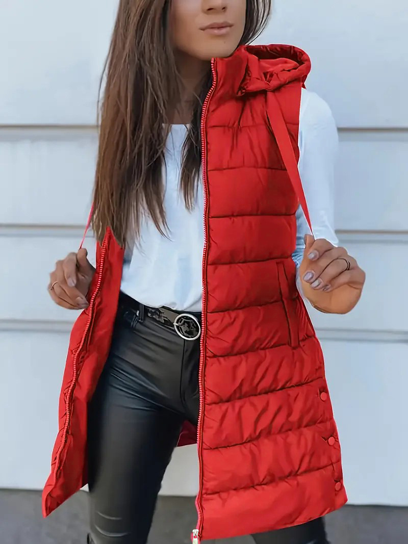 국경 간 인기 유럽과 미국 2025 Amazon 솔리드 컬러 후드 지퍼 코튼 조끼 재킷 여성 중간 길이 대형