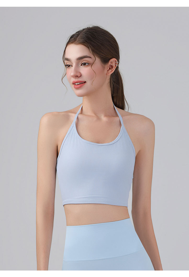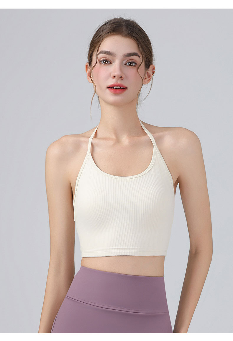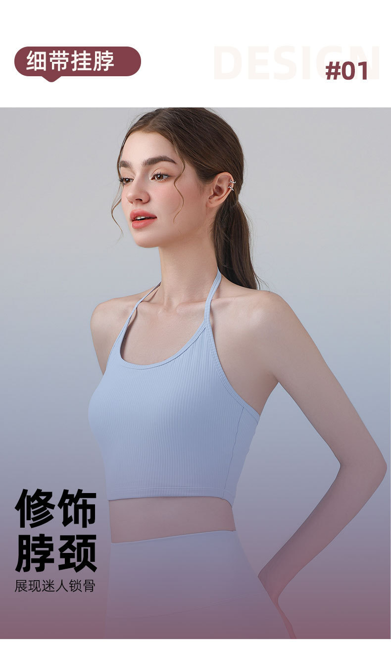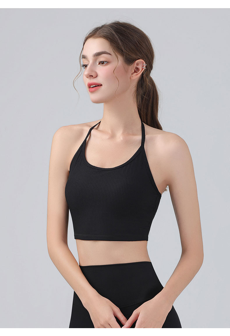 여성을위한 전문 요가 의류 2025 가슴 패드가있는 하이 엔드 패션 홀터넥 스포츠 브라 충격 방지 브라 피트니스 조끼 여름