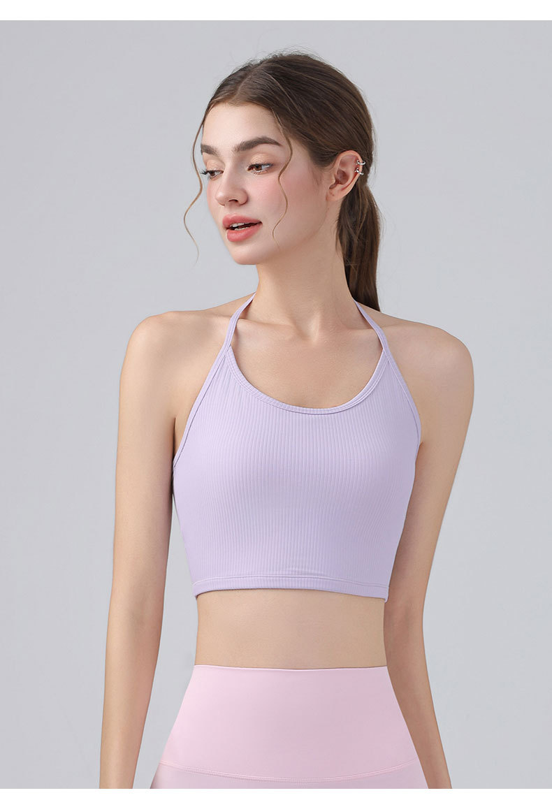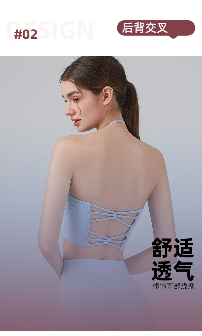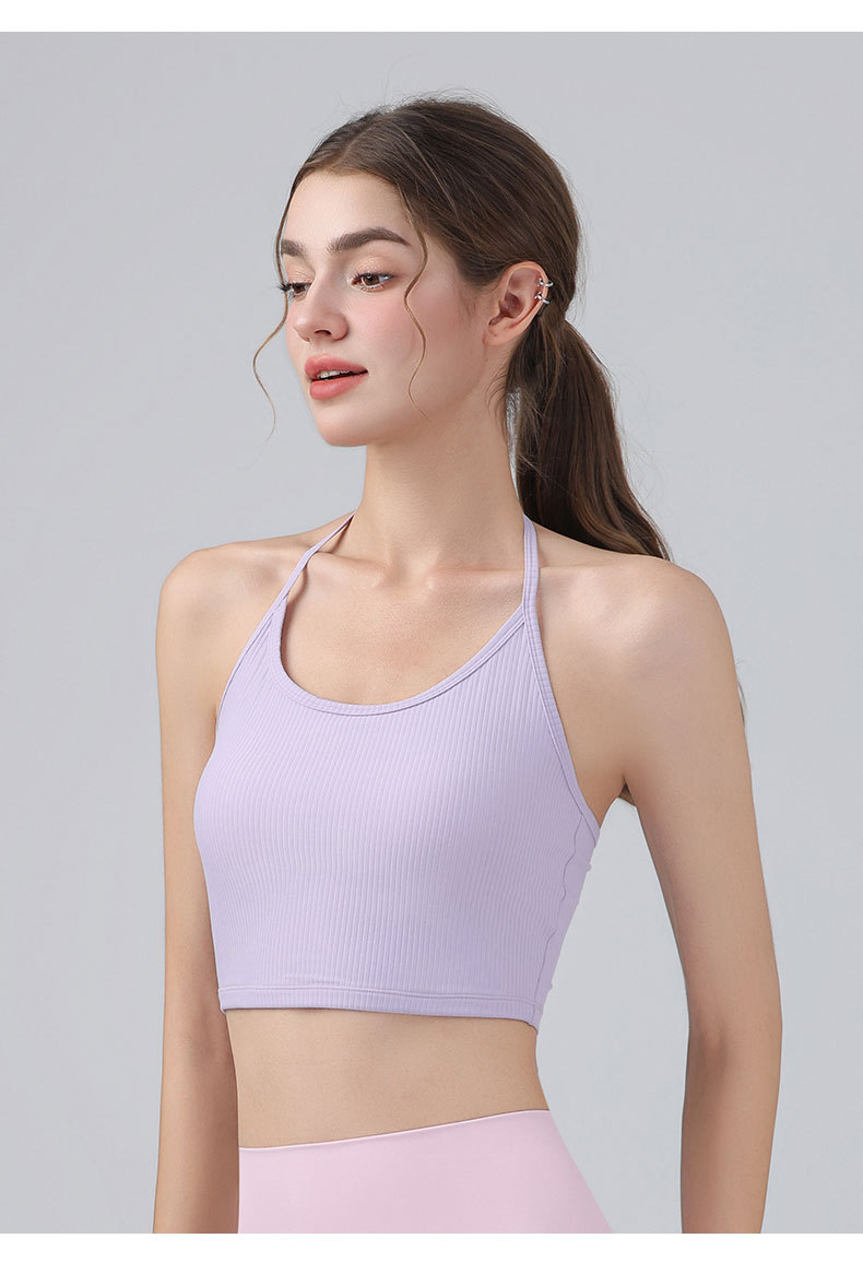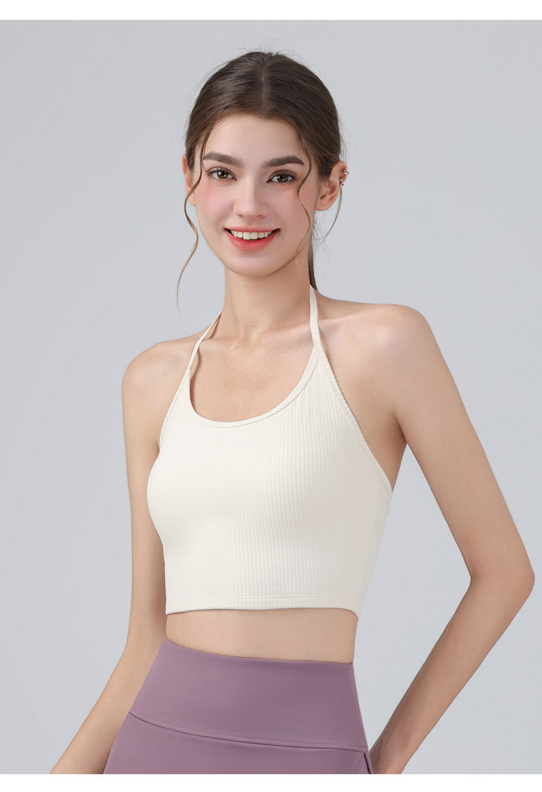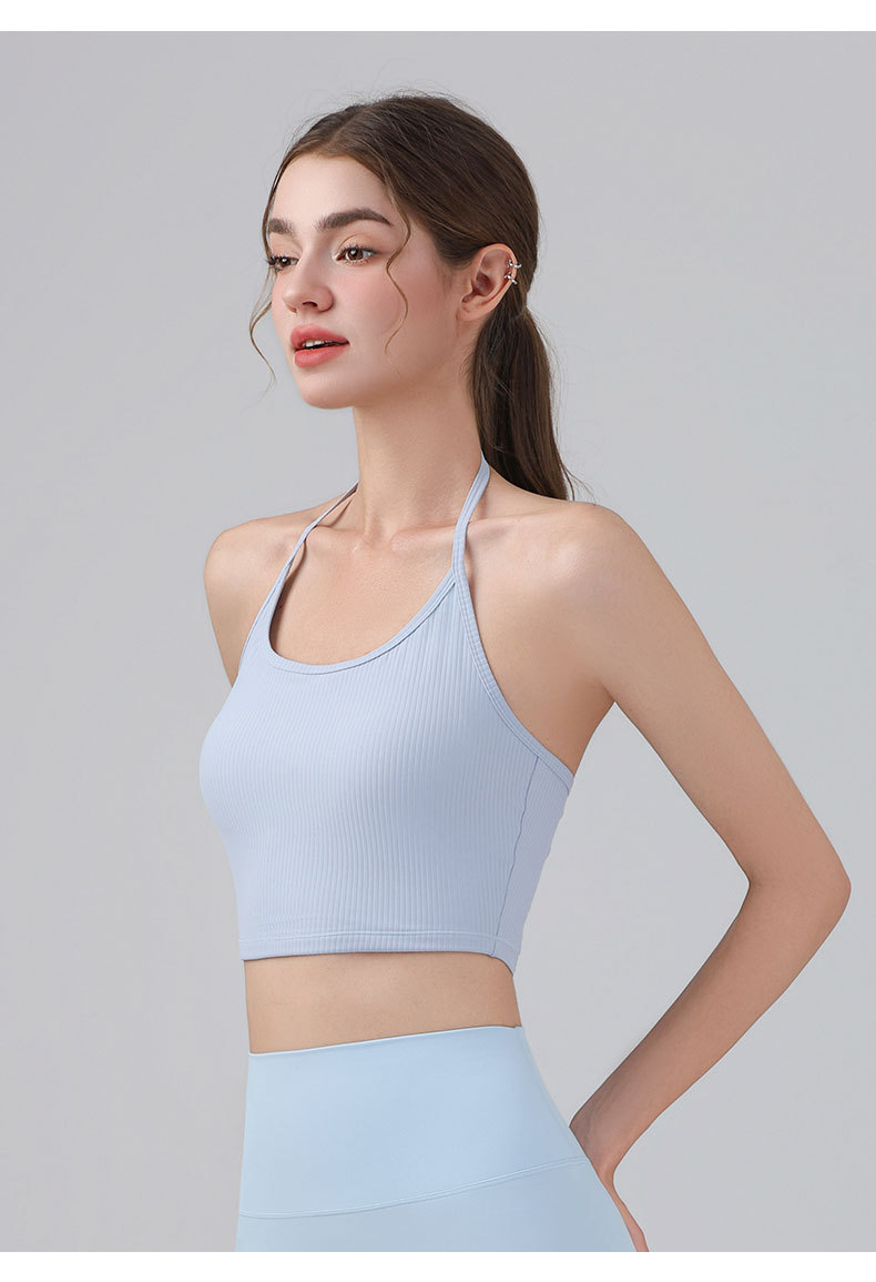 여성을위한 전문 요가 의류 2025 가슴 패드가있는 하이 엔드 패션 홀터넥 스포츠 브라 충격 방지 브라 피트니스 조끼 여름