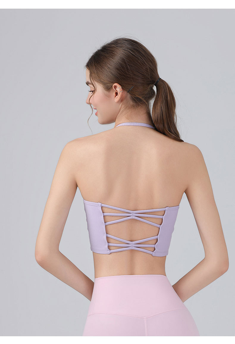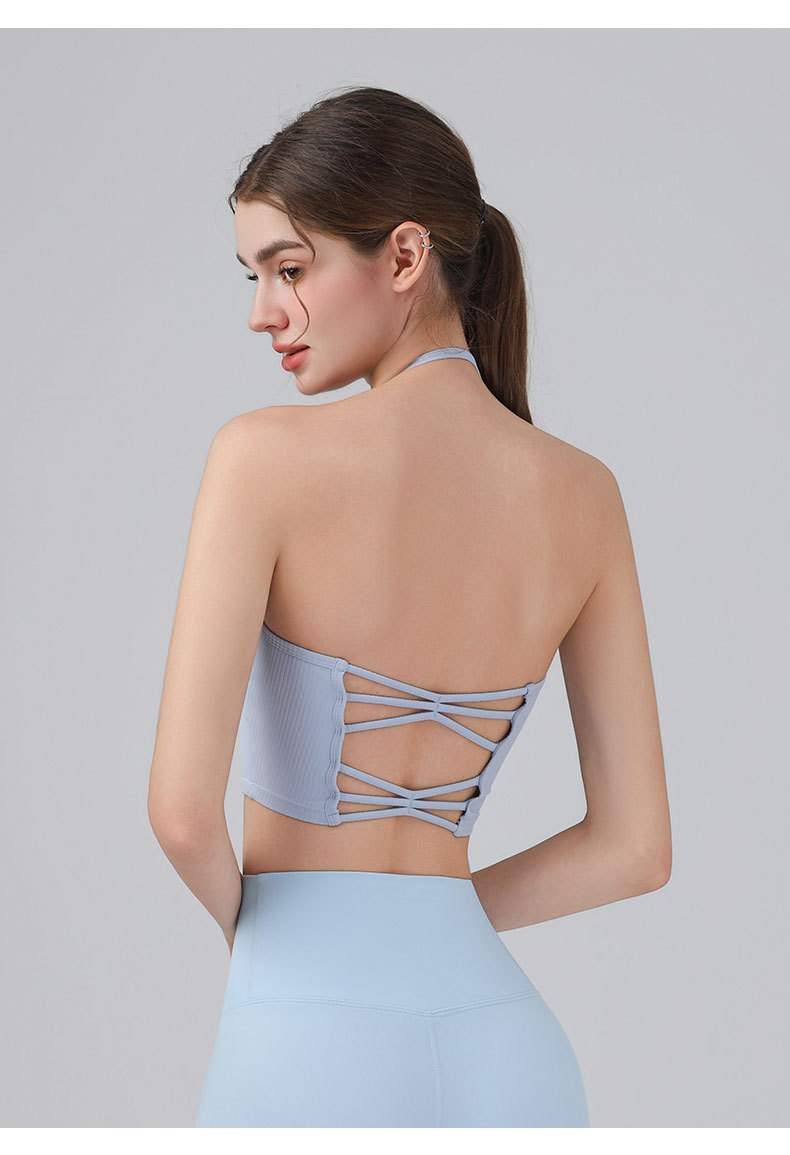 여성을위한 전문 요가 의류 2025 가슴 패드가있는 하이 엔드 패션 홀터넥 스포츠 브라 충격 방지 브라 피트니스 조끼 여름스토어 가기