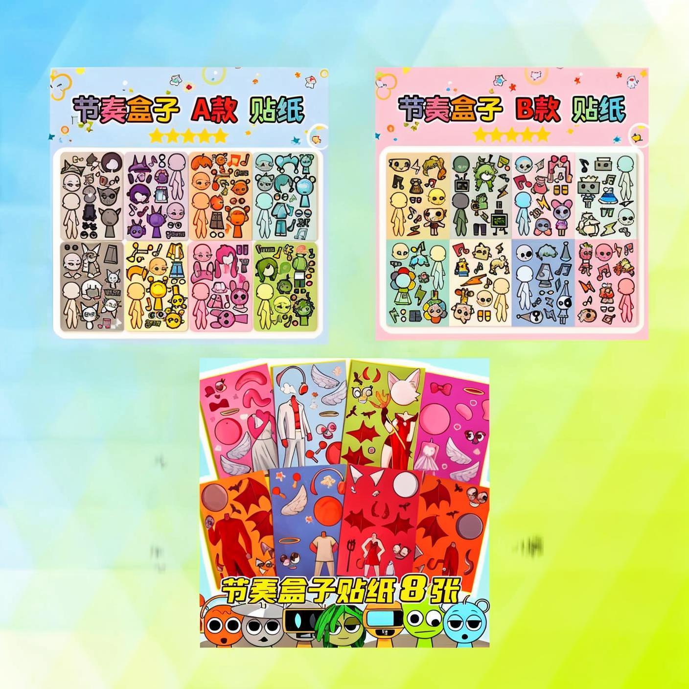 Labrador Sprunki 캐릭터 드레스 업 스티커 소녀 소년 어린이 교육 얼굴 변경 집중 스티커 책스토어 가기