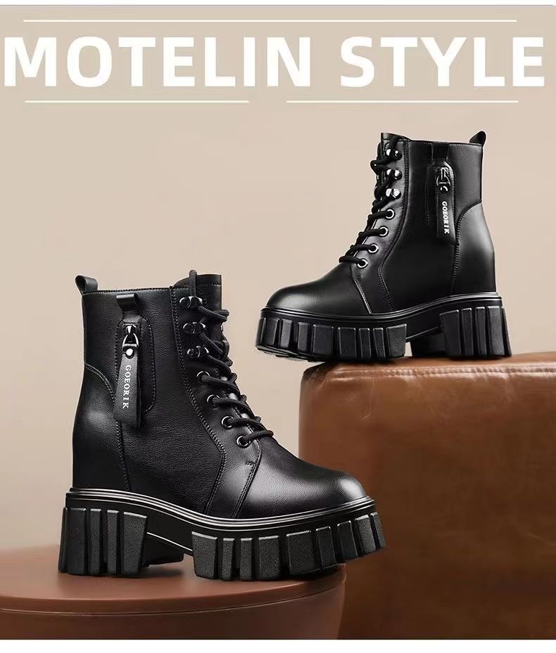 진짜 부드러운 가죽 마틴 부츠 2025 새로운 봄, 가을 싱글 부츠 두꺼운 밑창 내부 높이 부츠 플러스 벨벳 영국 스타일 짧은 부츠 여성용스토어 가기