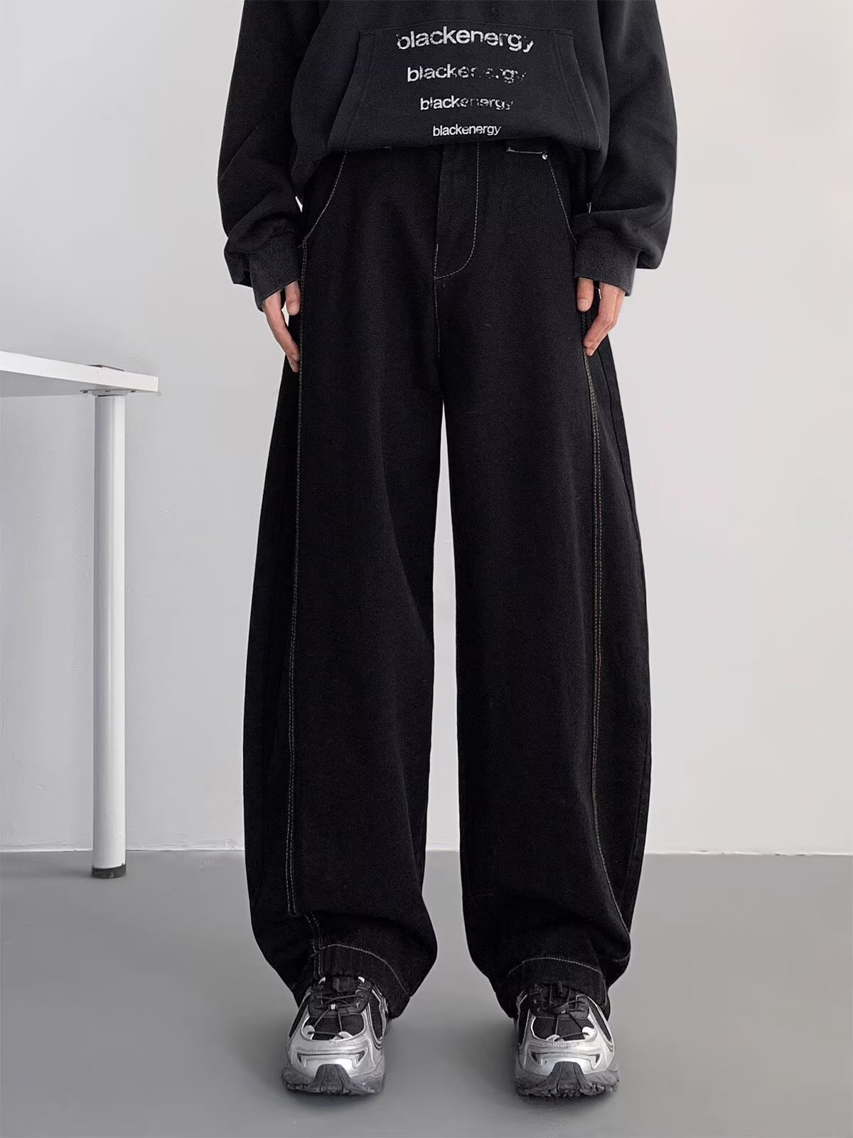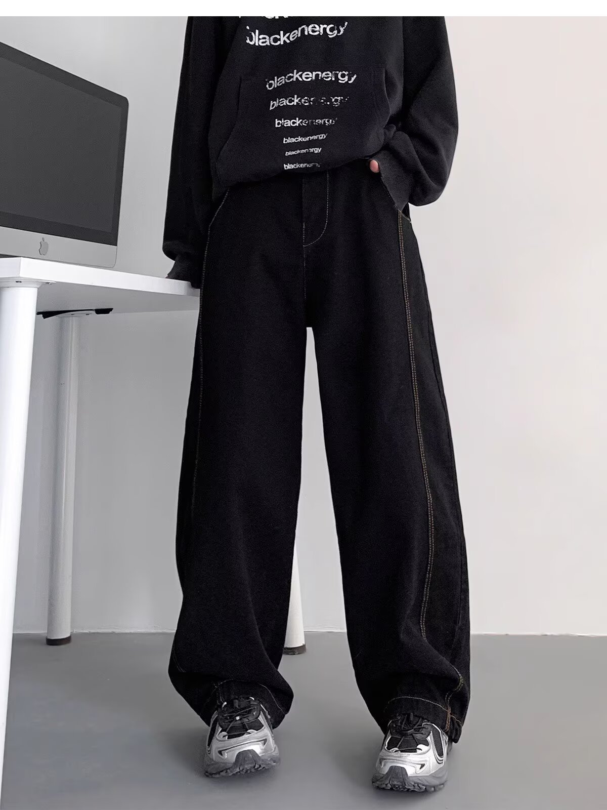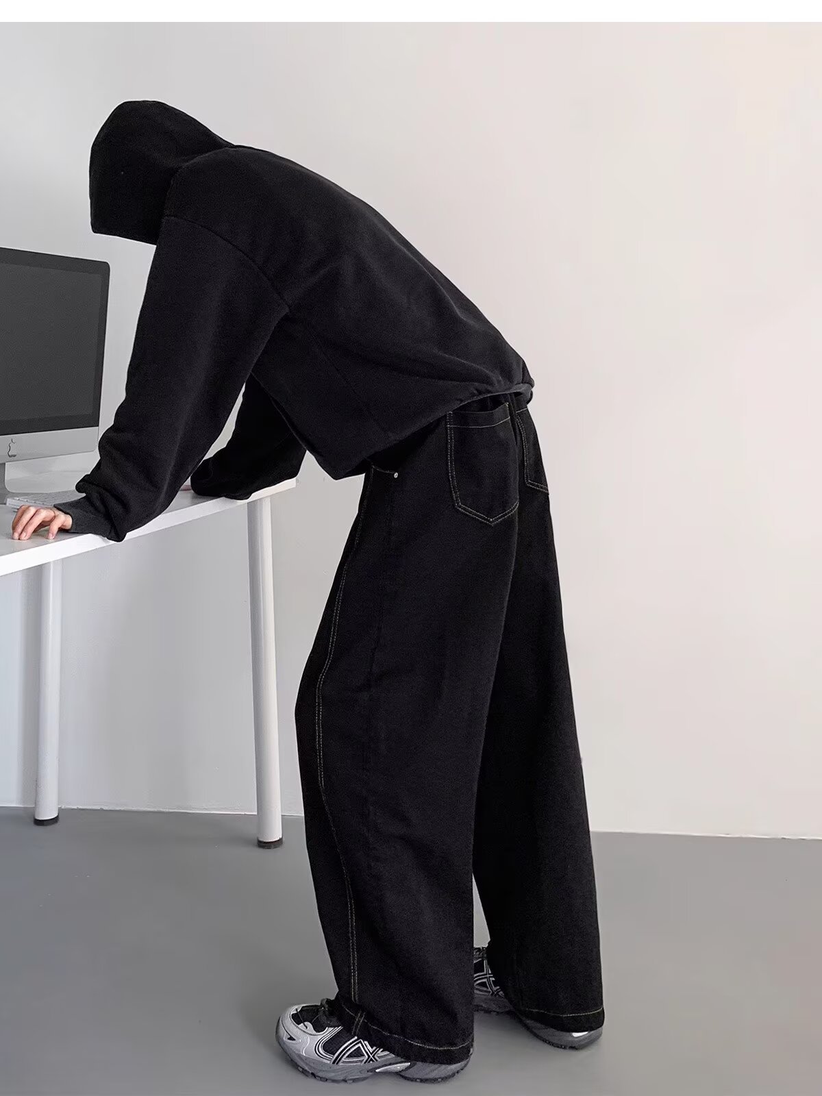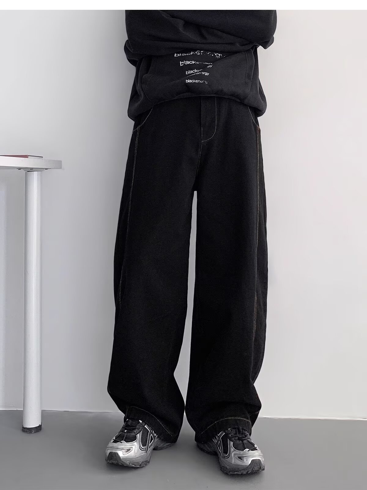 매달린 다크 진 남성 여름 미드 하이 웨이스트 와이드 레그 다용도 레트로 오버사이즈 스트레이트 캐주얼 바지
