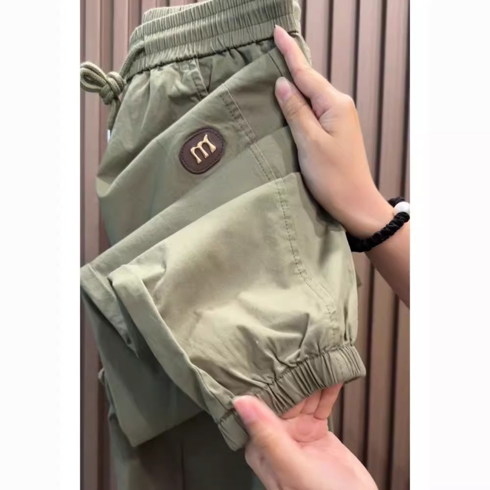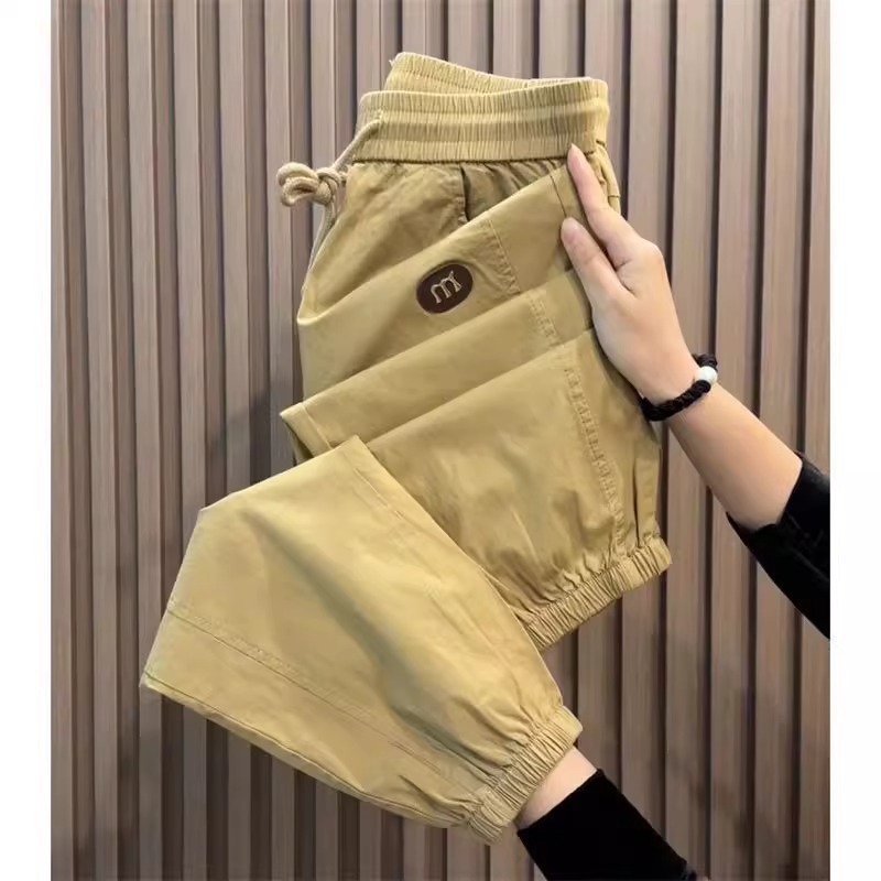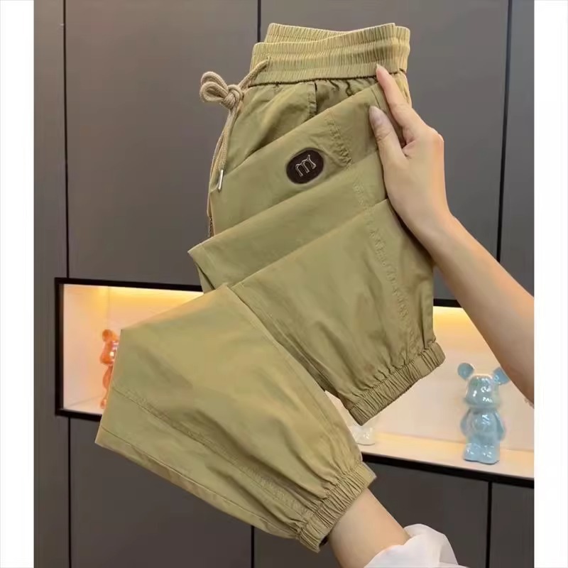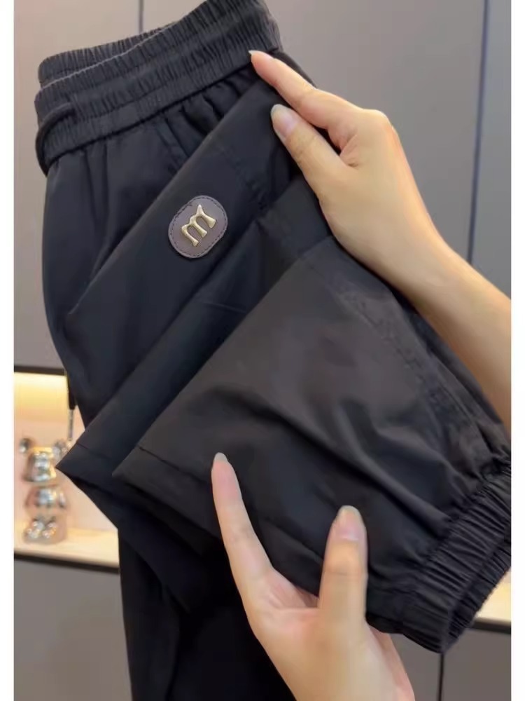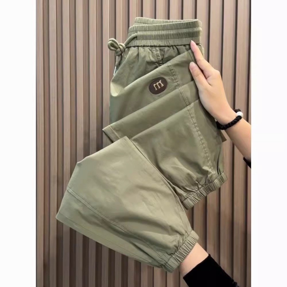 남성용 여름 아이스 실크 얇은 캐주얼 바지, 여름 트렌디 루즈 레그 타이 9부 스포츠 워크웨어 바지, 남성용 바지스토어 가기
