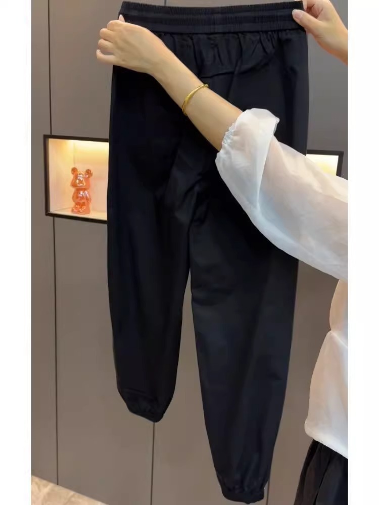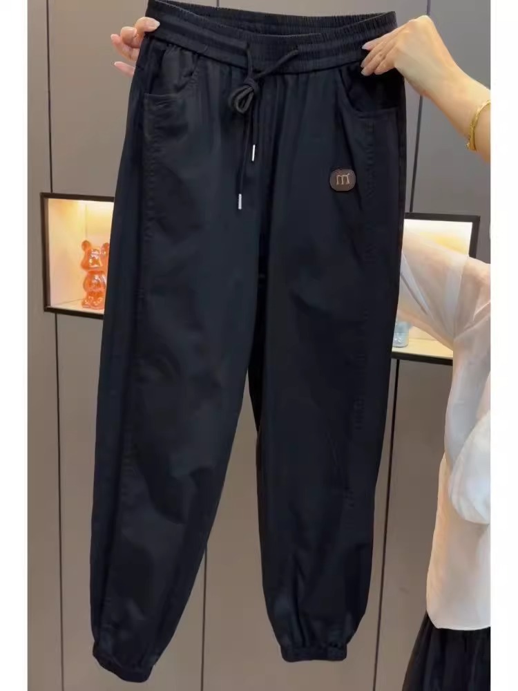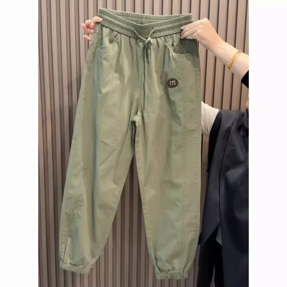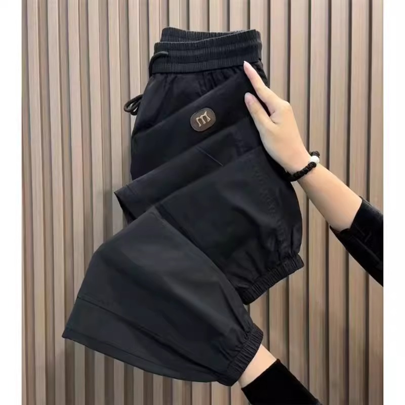 남성용 여름 아이스 실크 얇은 캐주얼 바지, 여름 트렌디 루즈 레그 타이 9부 스포츠 워크웨어 바지, 남성용 바지스토어 가기