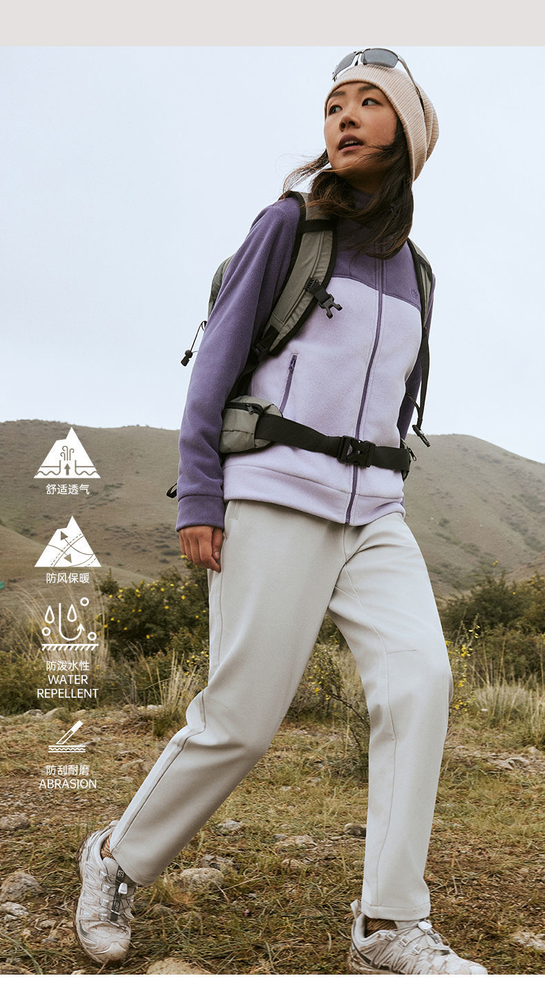 24 가을 겨울 탐험 소프트 쉘 바지 여성용 스트레치 벨벳 충전 바지 여성용 야외 하이킹 바지 긁힘 방지 바지 방풍 및 방수