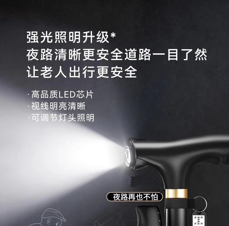 • 야간 조명이 있는 단일 다리 목발 검정색