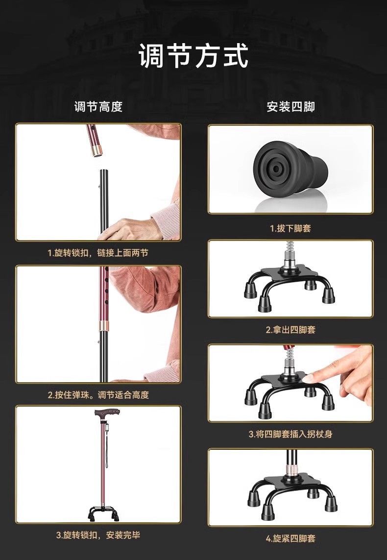 독일산 노인용 지팡이, 노인용 미끄럼 방지 보행 보조기, 등산 및 기립을 돕는 특수 경량 4족 지팡이스토어 가기