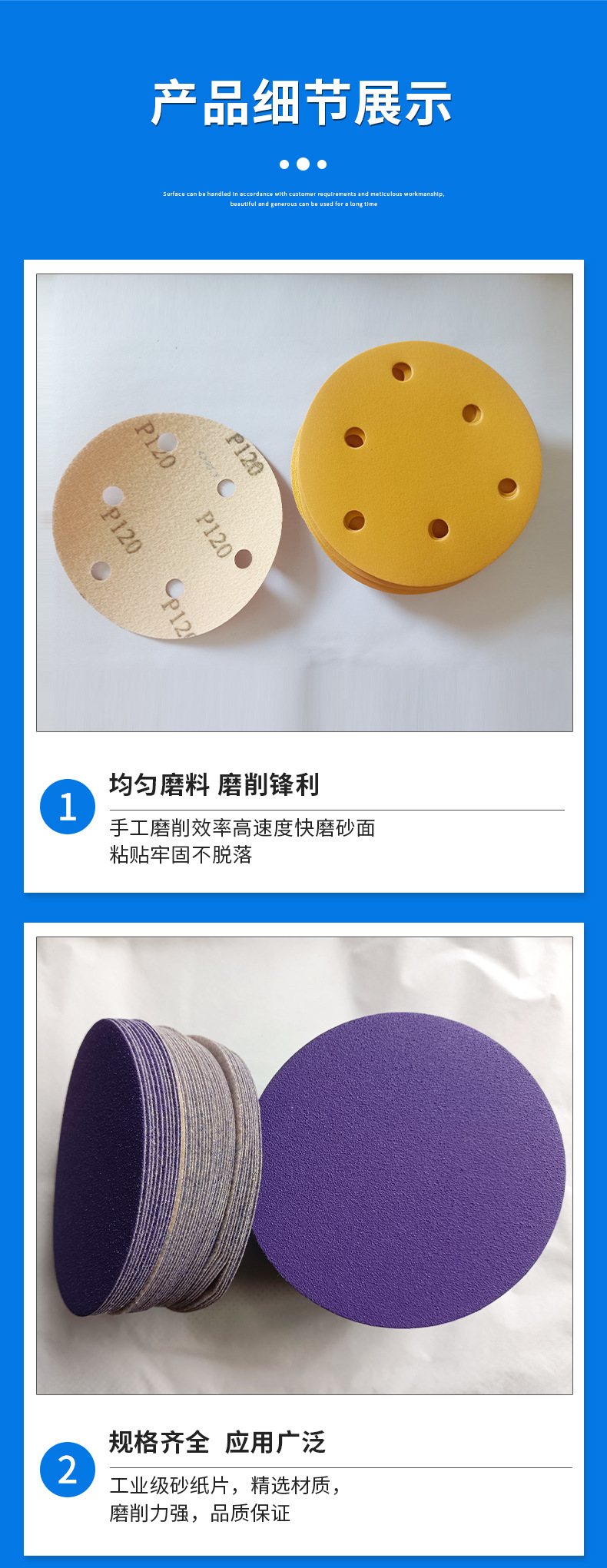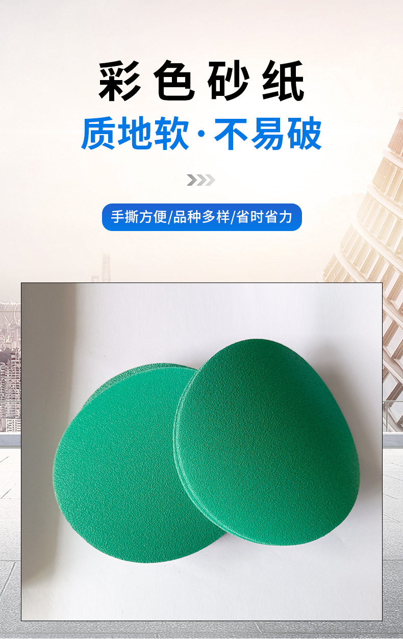 다중 사양 노란색 모래, 보라색 모래, 녹색 모래, 벨벳 원형 디스크, 에어 샌딩 페이퍼, 자체 접착 벨벳 시트, 5인치 8홀 플로킹 시트스토어 가기