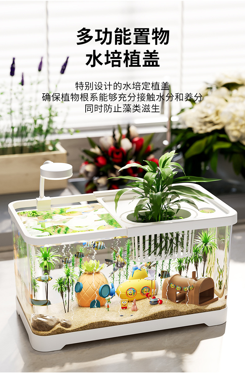 수조 수족관 거실 발코니 홈 생태 필터 HD 조경 금붕어 사무실 마이크로 풍경 금붕어 탱크스토어 가기