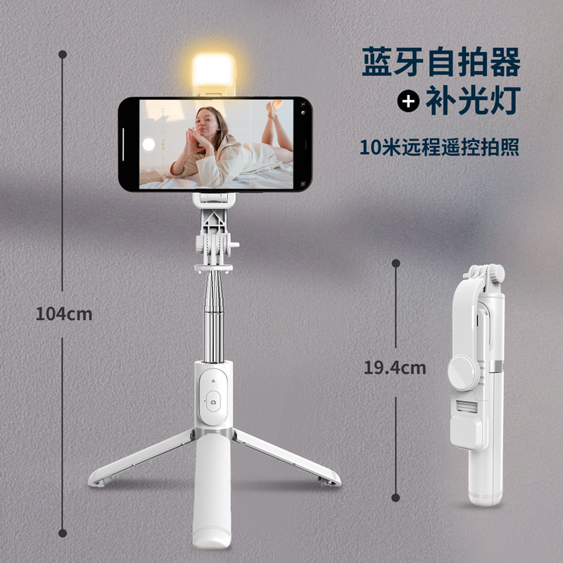 • [Q02s-화이트] 3색 뷰티필라이트 + 텔레스코픽 폴 + 안정적인 삼각대 + 블루투스 리모콘